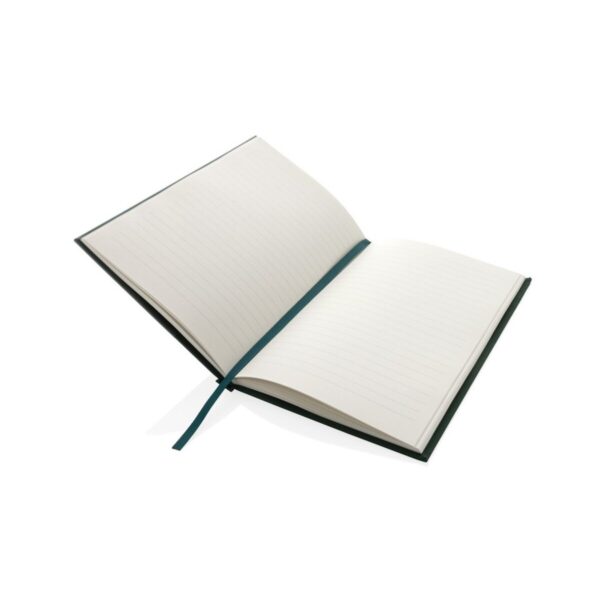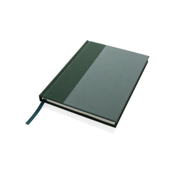 Notatnik wyposażony jest w twardą, zieloną okładkę, co dodaje mu elegancji i sprawia, że świetnie prezentuje się na biurku. Jego wymiary 21,5 x 14,6 x 1,5 cm oraz 80 białych kartek w linie o gramaturze 80 g/m2 zapewniają komfort użytkowania i dużą funkcjonalność. Doskonały do zapisywania ważnych notatek, listów zadań czy jako dziennik osobisty. Całkowita zawartość materiałów z recyklingu w produkcie wynosi 99%, a ślad węglowy został obliczony na poziomie 0,56 kg CO2, co stanowi doskonały wynik dla produktów tego typu.