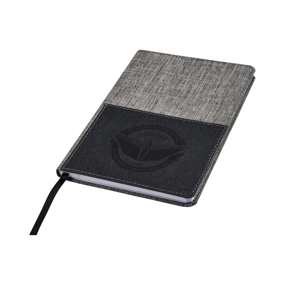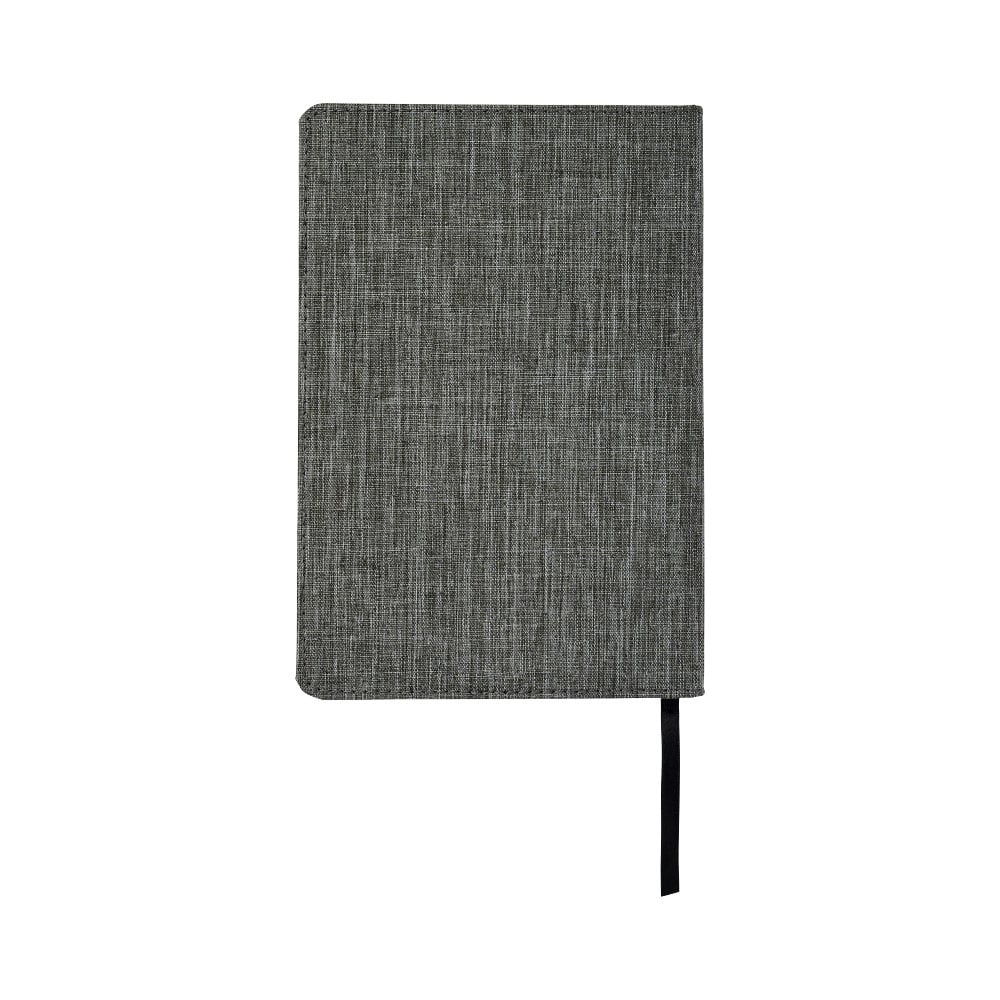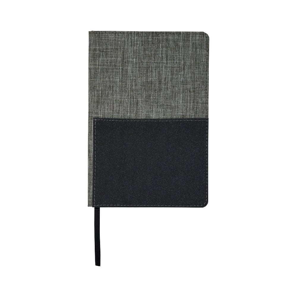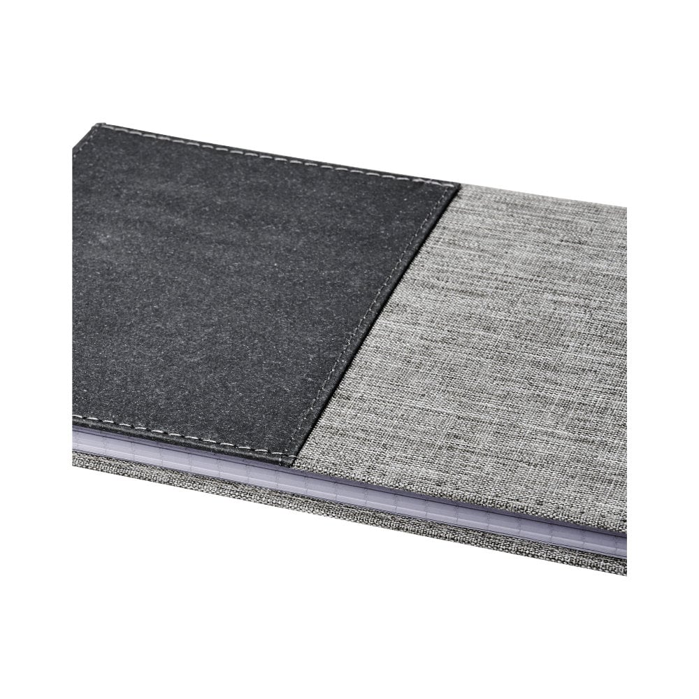 Notatnik biurowy o formacie A5 posiada szarą okładkę wykonaną z 70% poużytkowego plastiku, tekturę wykonaną w 100% z odtworzonego papieru oraz przednią kieszenią stworzoną z resztek skóry. Kieszeń jest wystarczająco duża, aby pomieścić smartfon, długopis lub inne drobiazgi. W środku znajduje się 80 arkuszy w linie z kremowego papieru o gramaturze 80 g/m². Notatnik został zapakowany w czarne pudełko prezentowe. Jest to doskonały produkt dla osób, które lubią organizować notatki i szukają produktu, który jest zarówno ekologiczny, jak i modny.