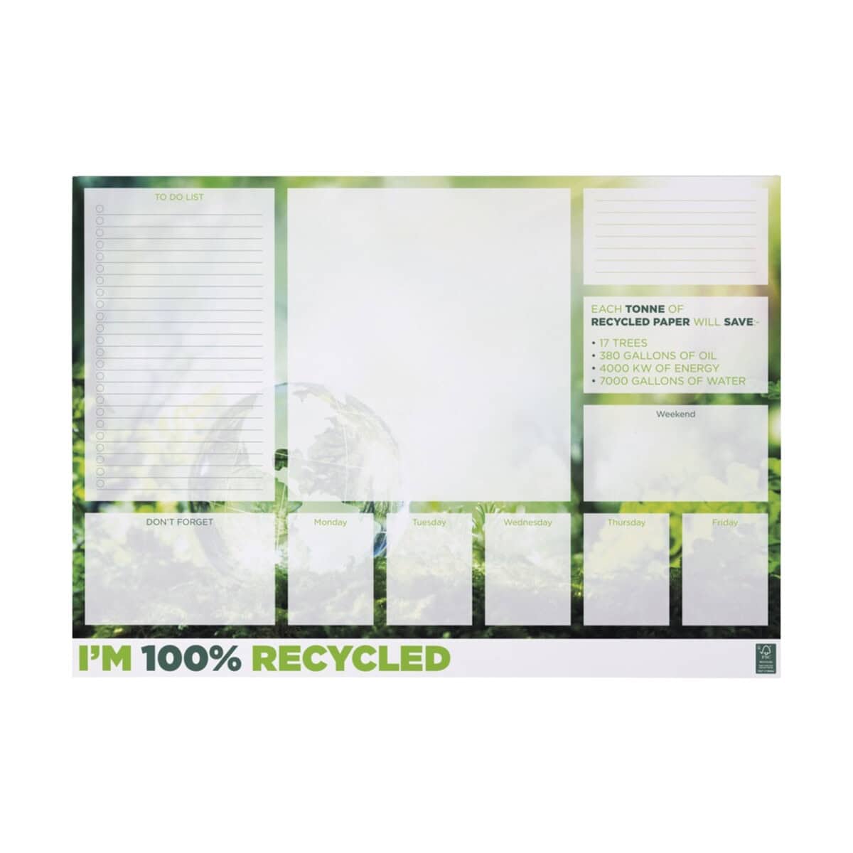 Notatnik Desk-Mate® w formacie A2 z materiałów z recyklingu to wyjątkowy, ekologiczny gadżet, który zwraca uwagę dużą powierzchnią użytkową oraz troską o środowisko 🌱. Arkusze o gramaturze 80 g/m² pochodzą w 100 % z odzysku, dzięki czemu stanowią wybór przyjazny planecie, a jednocześnie gwarantują wygodę pisania. Już od pierwszej kartki zaskakuje możliwością pełnokolorowego nadruku, co czyni go świetnym nośnikiem komunikacji wizualnej dla Twojej firmy.