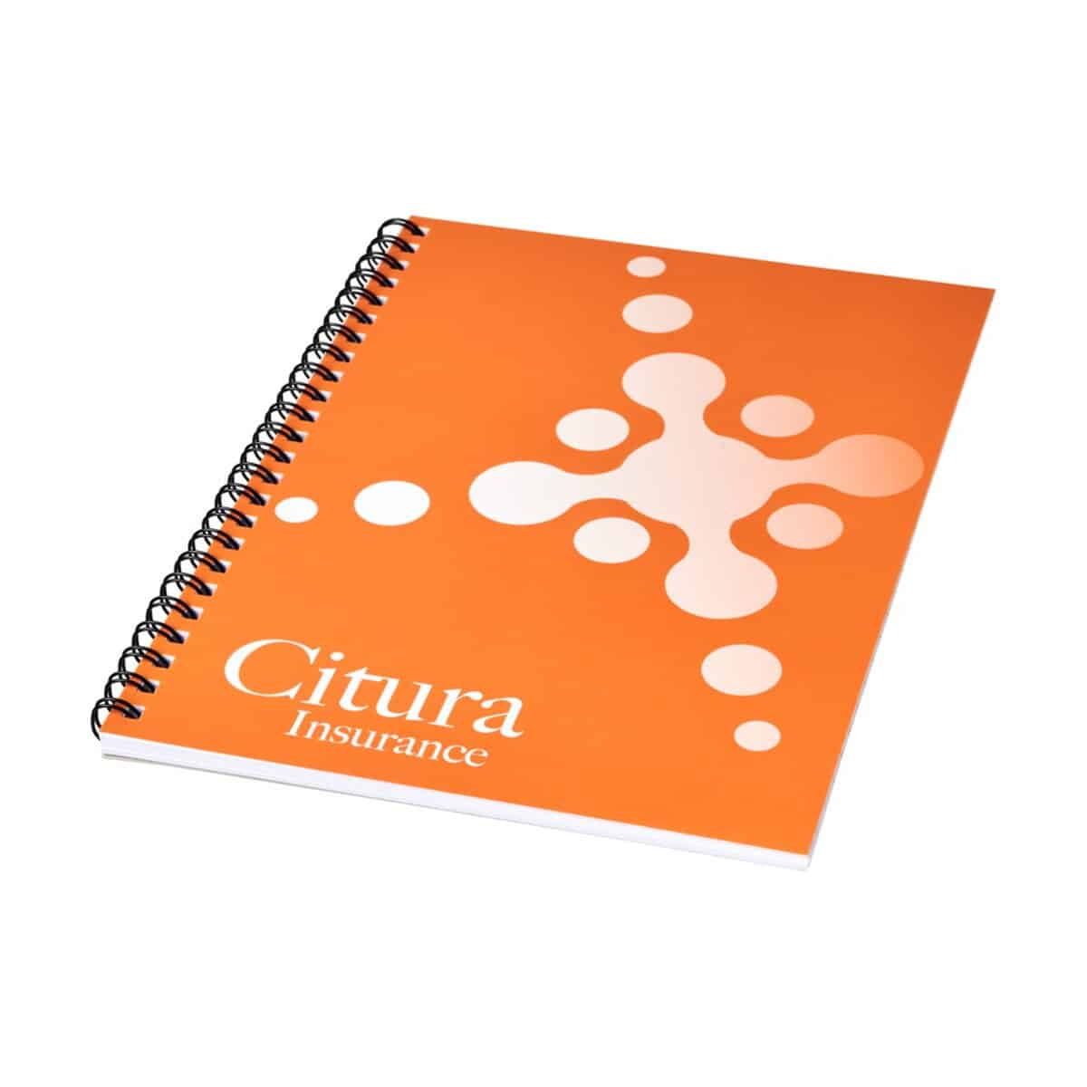 Notatnik Desk-Mate® w formacie A4 z okładką wykonaną z syntetycznego materiału to doskonały wybór dla osób z branży szkoleniowej, edukacyjnej, farmaceutycznej oraz IT, które pragną podarować elegancki, funkcjonalny i trwały upominek. Ten reklamowy notatnik pomieści Twoje inspiracje, zapiski ze spotkań, a nawet szybkie szkice projektów. Każdą stronę i okładkę można ozdobić wysokiej jakości nadruk, dzięki czemu stanie się on nośnikiem Twojego firmowego komunikatu. Solidna, biała spiralna przedziałka zapewnia wygodne przekładanie kartek, a syntetyczny materiał okładki gwarantuje długowieczność.