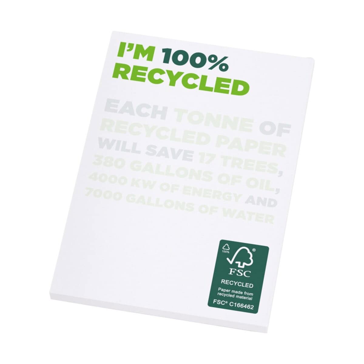 Notatnik Desk-Mate® w formacie A7 z materiałów z recyklingu to znakomity, ekologiczny gadżet, który pozwoli wyróżnić się każdej marce. Dzięki kompaktowym wymiarom 7,4 × 0,6 × 10,5 cm oraz lekkiej wadze 16 g bez trudu zmieści się w kieszeni, torbie konferencyjnej czy firmowym welcome packu. Aż 50 arkuszy papieru z recyklingu 80 g/m² w standardowej wersji – lub 25 i 100 arkuszy w pozostałych wariantach – oferuje dużą powierzchnię, na której możemy umieścić pełnokolorowy nadruk na każdej stronie. To sprawia, że każdy zapisany pomysł, szkic czy notatka staje się cichym ambasadorem marki 🙂