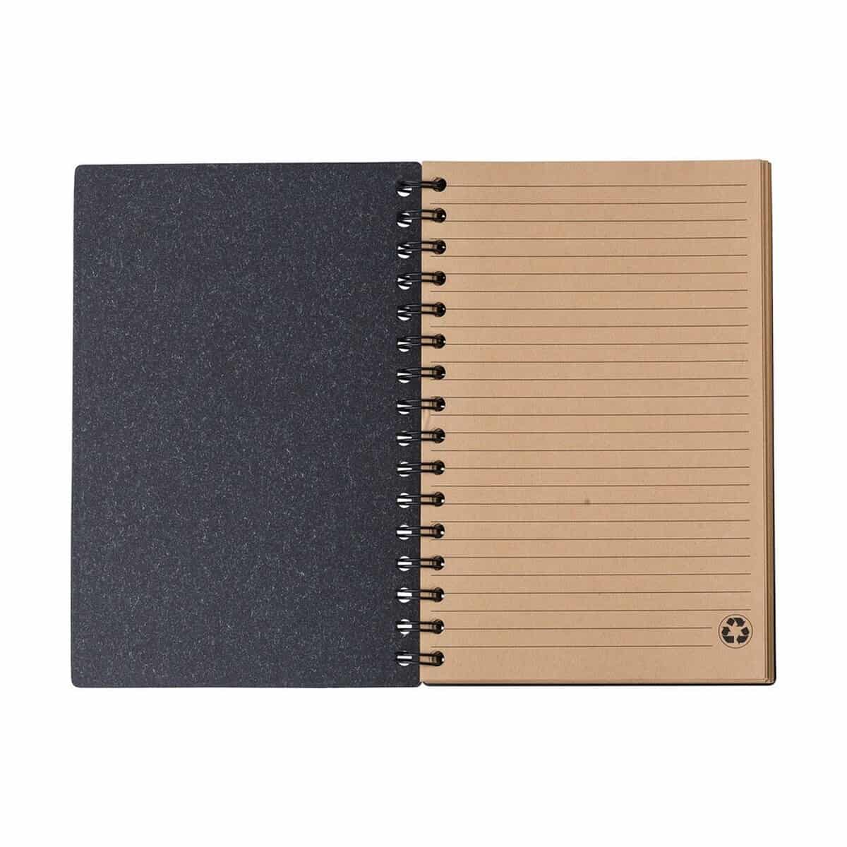 Sztywna, wykonana w 100% z recyklingu okładka zapewnia wytrzymałość i profesjonalny wygląd, a 80 kartek w linie daje przestrzeń na pomysły, notatki ze spotkań czy szkice projektów. Wymiary: 14,5 × 1 × 21 cm sprawiają, że zmieści się w każdej torbie, a jednocześnie oferuje wystarczająco miejsca na klarowne zapiski. Jego lekka waga: 210 g pozwala mieć go zawsze przy sobie, a dostępność w kolorach: czarnym, brązowym i zielonym ułatwia dopasowanie do identyfikacji wizualnej dla Twojej firmy.