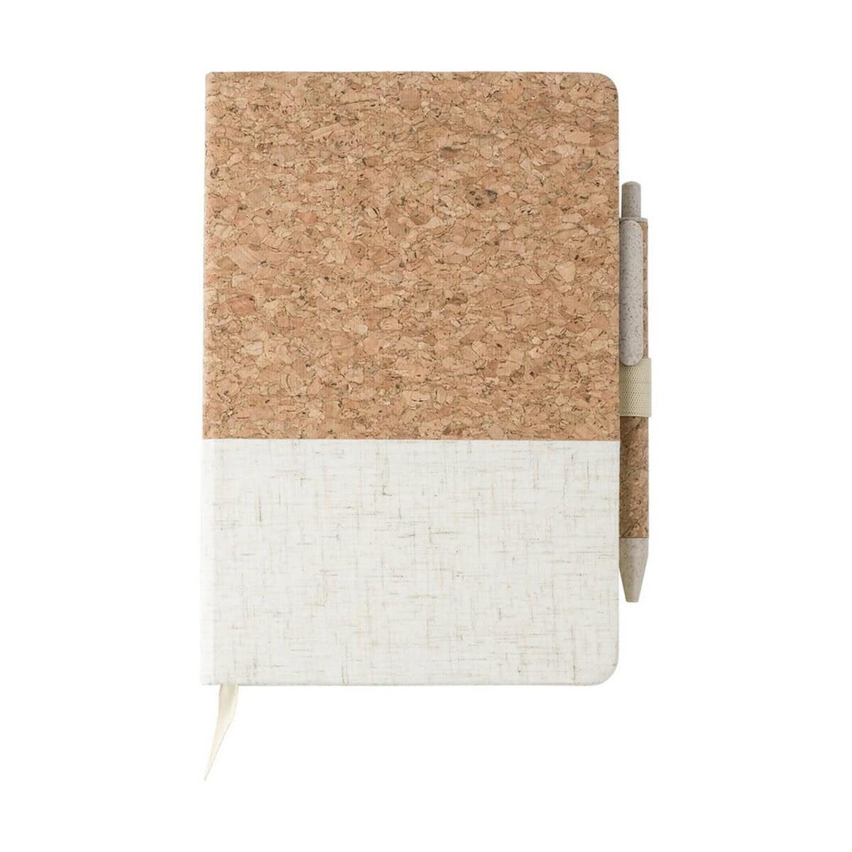 Notatnik ok. A5 z długopisem to gadżet, który z łatwością wyróżni każdą kampanię marketingową. Jego naturalna okładka z korka i płótna przyciąga wzrok, podkreślając proekologiczny charakter upominku 🌿. W środku znajduje się 80 kartek w linie, a wygodna tasiemka zakładkowa pozwala szybko odnaleźć właściwą stronę. Do zestawu dołączono długopis wykonany ze słomy pszenicznej, co potęguje wrażenie troski o środowisko. Całość mieści się w eleganckim pudełku o wymiarach 22 × 16 × 2 cm, gotowym do wręczenia.