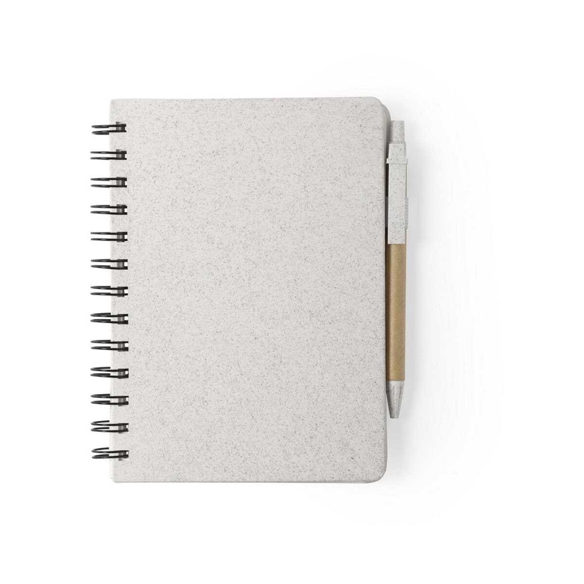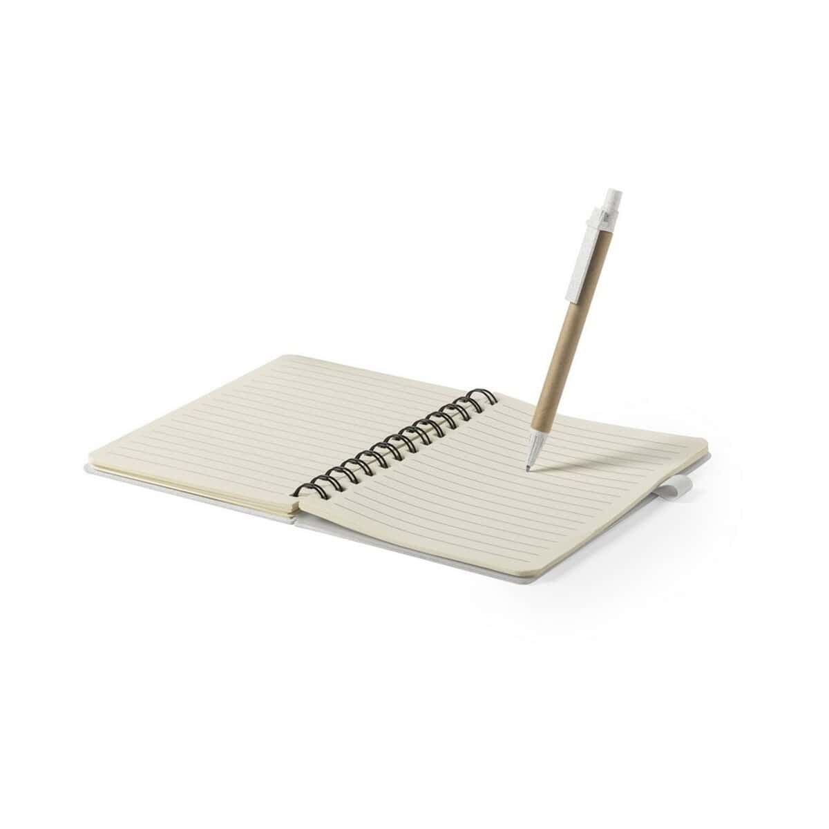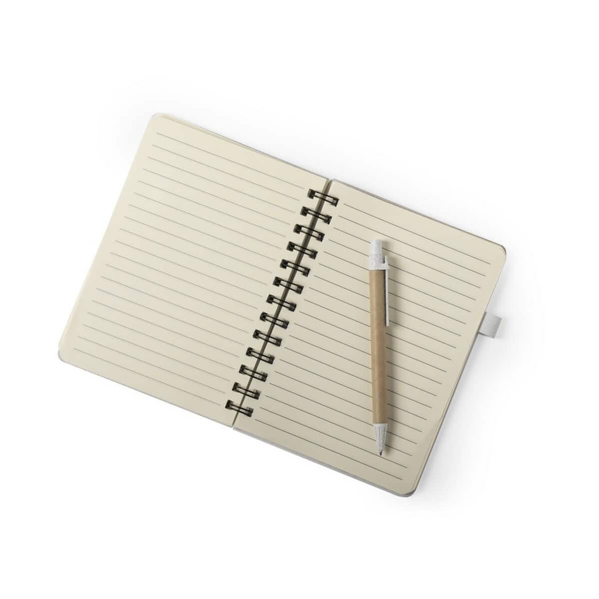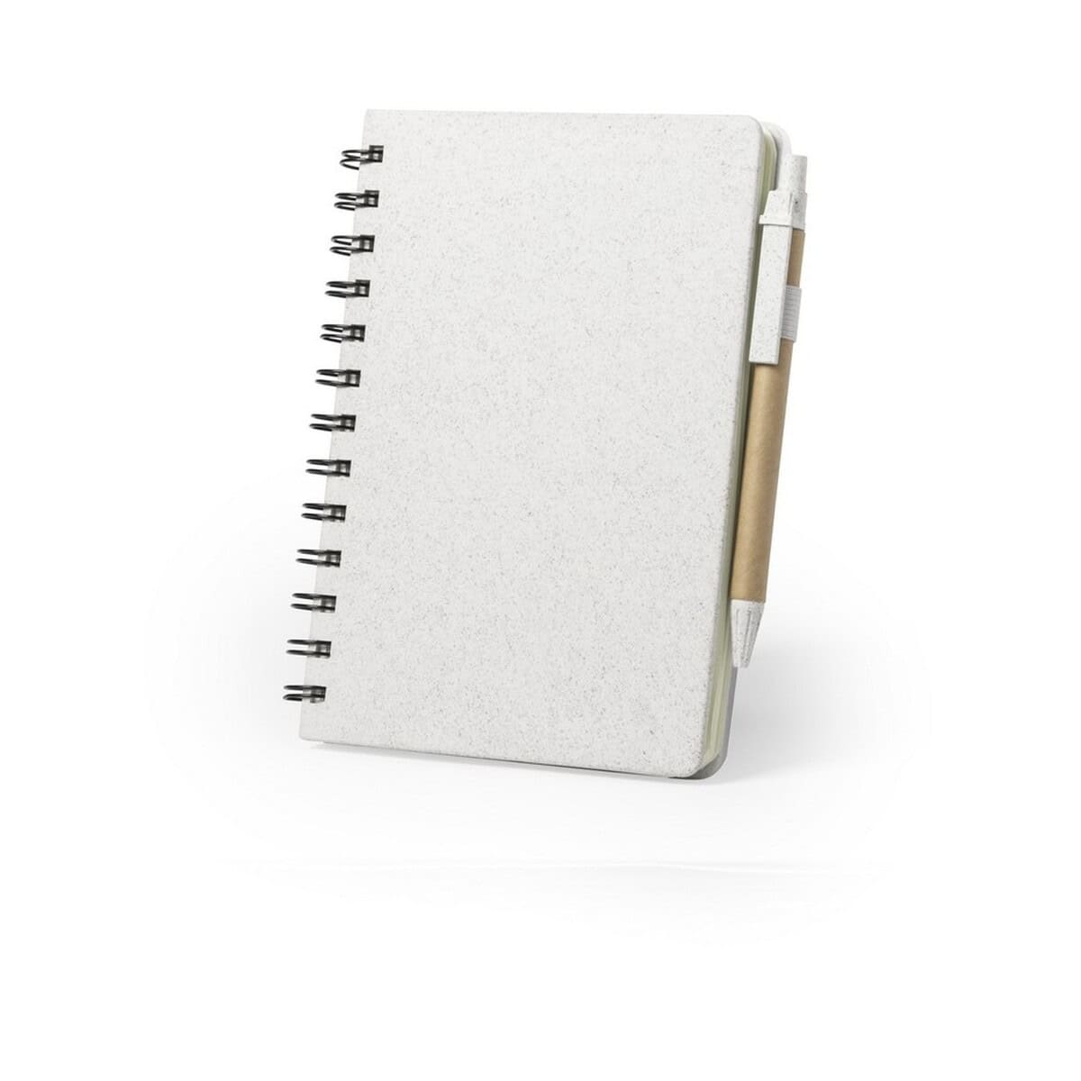 Notatnik ok. A5 ze słomy pszenicznej, długopis to ekologiczny gadżet, który podkreśli odpowiedzialny charakter każdej marki 😊. Wykonany z naturalnych włókien słomy pszenicznej oraz wytrzymałego pp, prezentuje się lekko i nowocześnie, a jednocześnie jest trwały dzięki twardej okładce i spiralnemu bindowaniu. Format ok. A5 przy wymiarach 13,5 x 17,9 x 1,8 cm sprawia, że zmieści się w plecaku, torebce czy aktówce. W komplecie znajduje się dopasowany długopis, co czyni zestaw od razu gotowym do pracy. 80 kartek w linie gwarantuje komfort pisania, a neutralny, naturalny kolor podkreśla eko-charakter produktu. Całość aż prosi się o efektowny nadruk lub eleganckie logo, które będzie dumnie towarzyszyć użytkownikowi podczas każdej notatki.