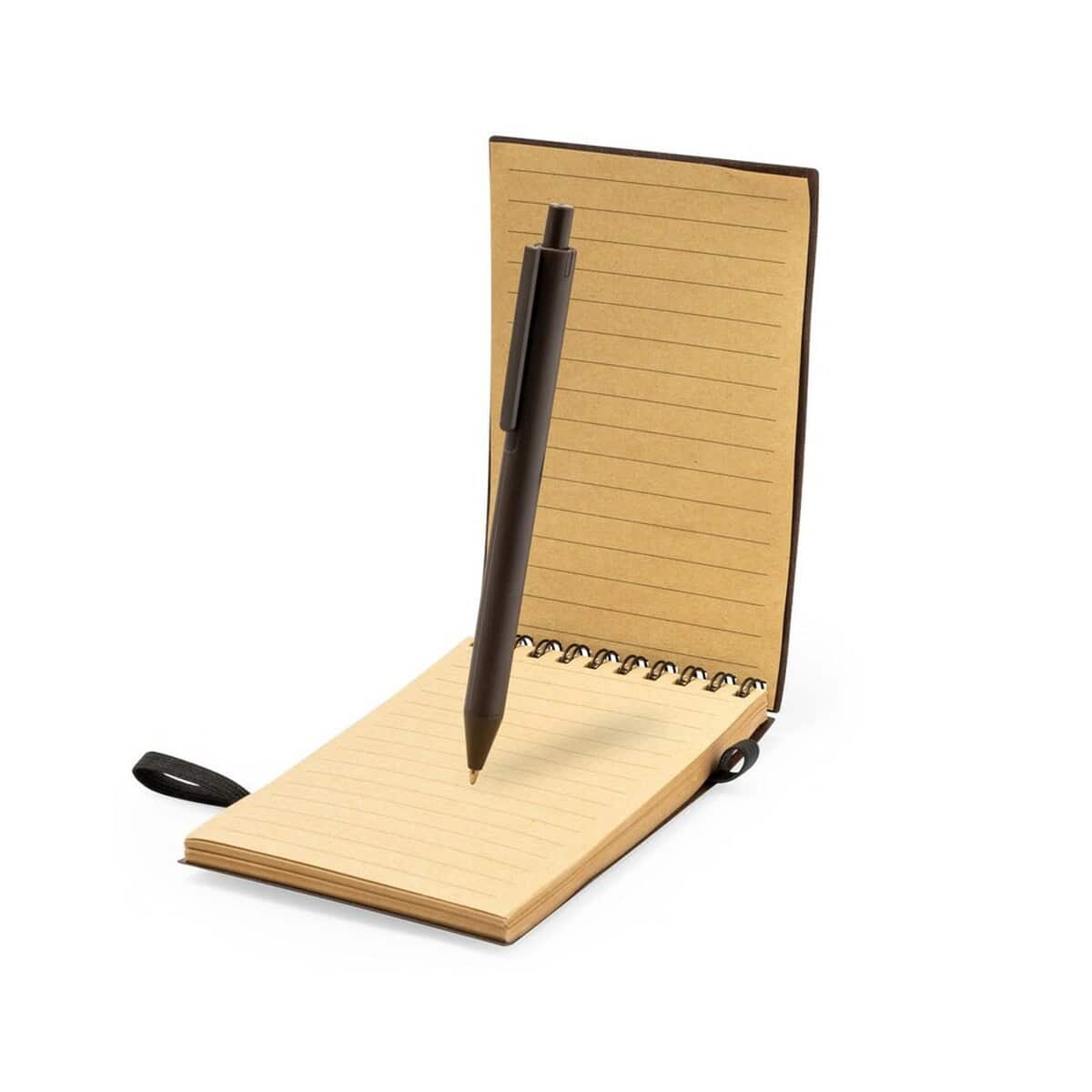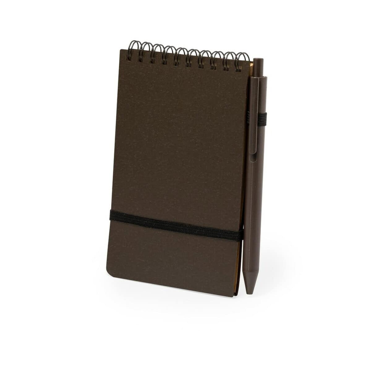 Ten model z kategorii notatniki z logo oraz długopisy ekologiczne z logo jest wprost stworzony na drobny, ale efektowny upominek reklamowy. Na miękkiej okładce z brązowych łusek kawowych można umieścić wyrazisty nadruk – dyskretny lub przyciągający uwagę – który wyróżni markę dla Twojej firmy. Całość przykuwa wzrok naturalną fakturą i przyjemnym w dotyku materiałem, a brązowa kolorystyka nawiązuje do ziaren kawy, budząc skojarzenia z aromatem świeżo parzonego napoju ☕.