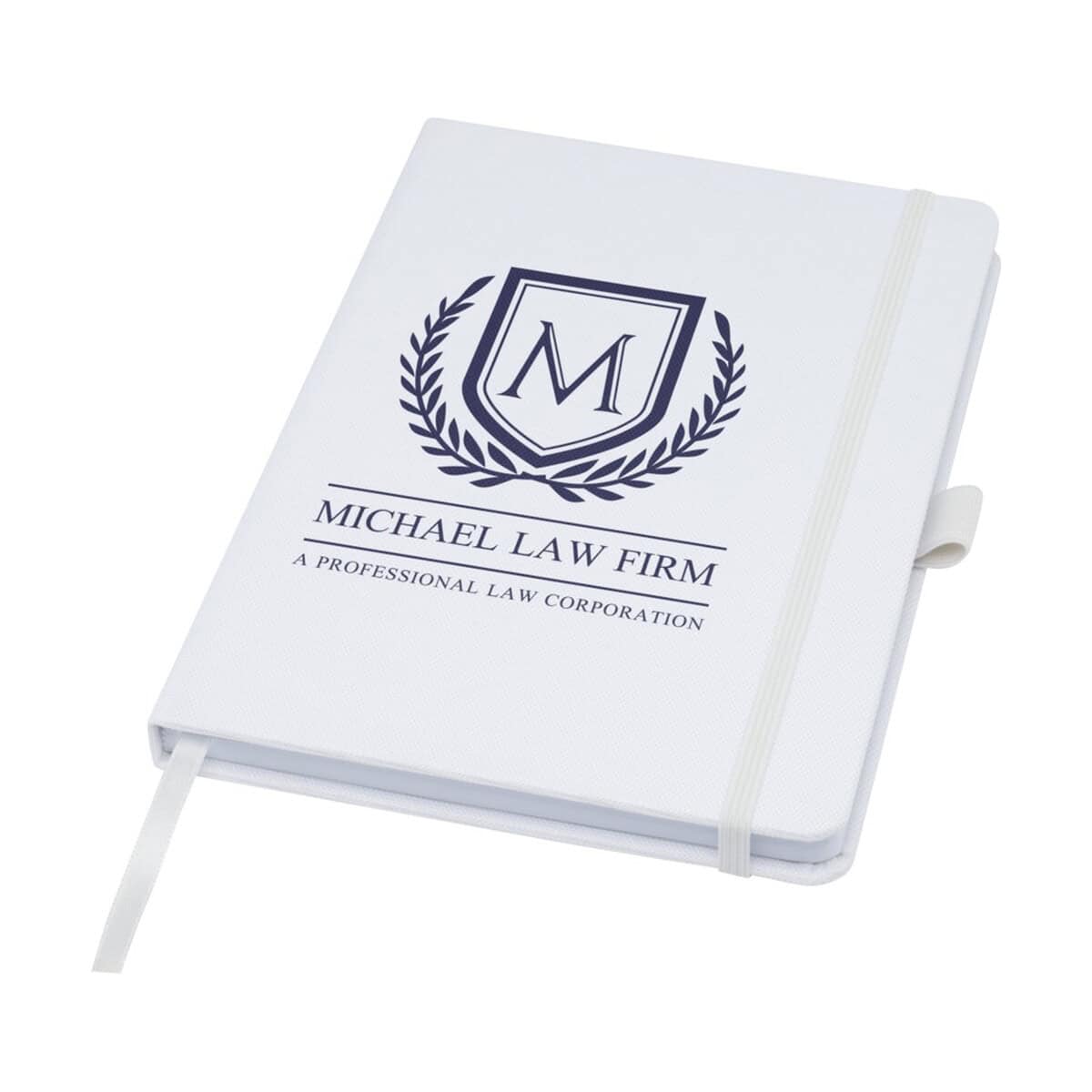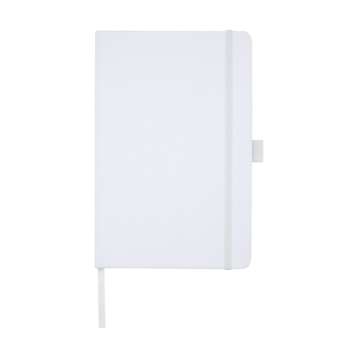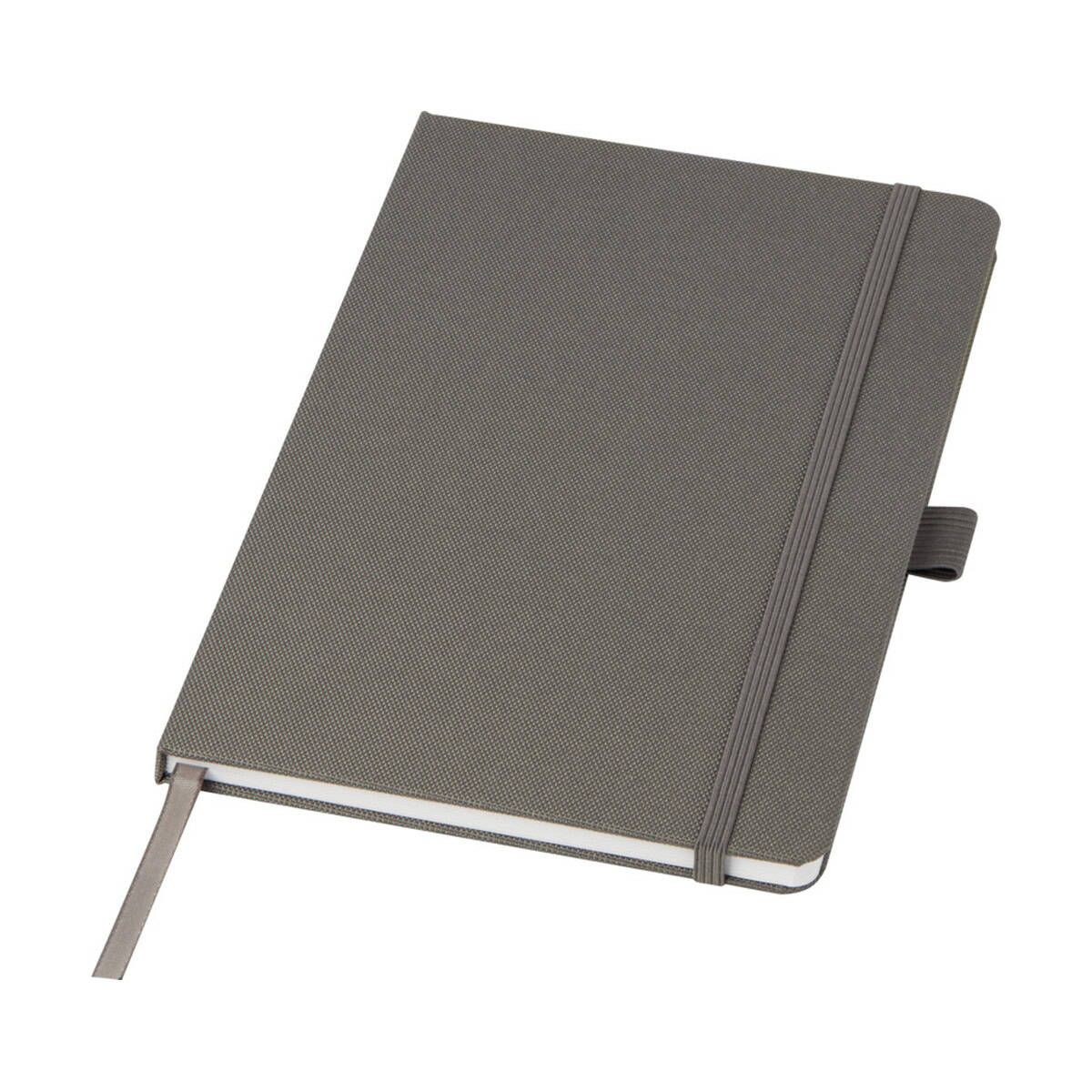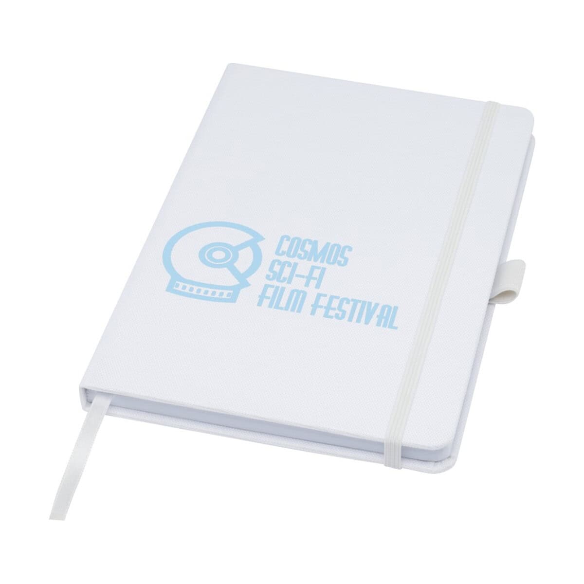 Notatnik w formacie A5 z papieru z recyklingu z okładką z plastiku z recyklingu Honua oferuje pętelkę na pióro, praktyczną wstążkę–zakładkę oraz szeroką gamę kolorystyczną: szary, czerwony, zielony, biały, piasek pustyni, niebieski, czarny i fioletowy. Dzięki temu łatwo dopasujesz barwę do identyfikacji wizualnej marki. Dla studentów i uczniów będzie świetnym miejscem na notatki z wykładów, dla projektantów – szkicownikiem, a dla menedżerów – podręcznym planerem spotkań. To reklamowe rozwiązanie przyjazne środowisku, które udowadnia, że troska o detale i ekologię może iść w parze z elegancją oraz wygodą użytkowania.