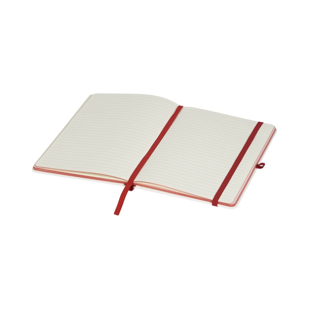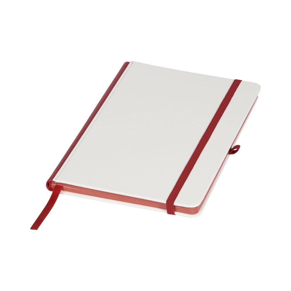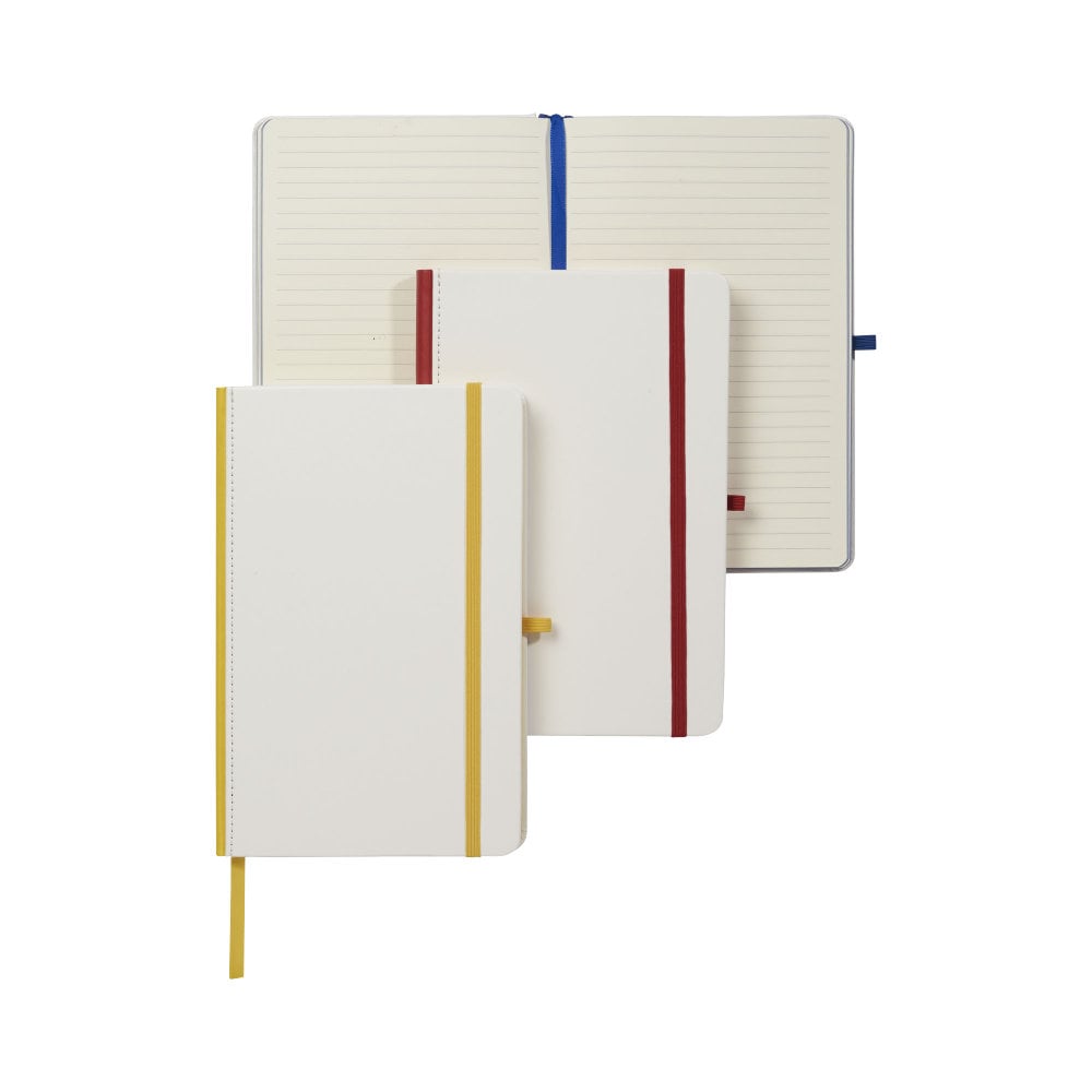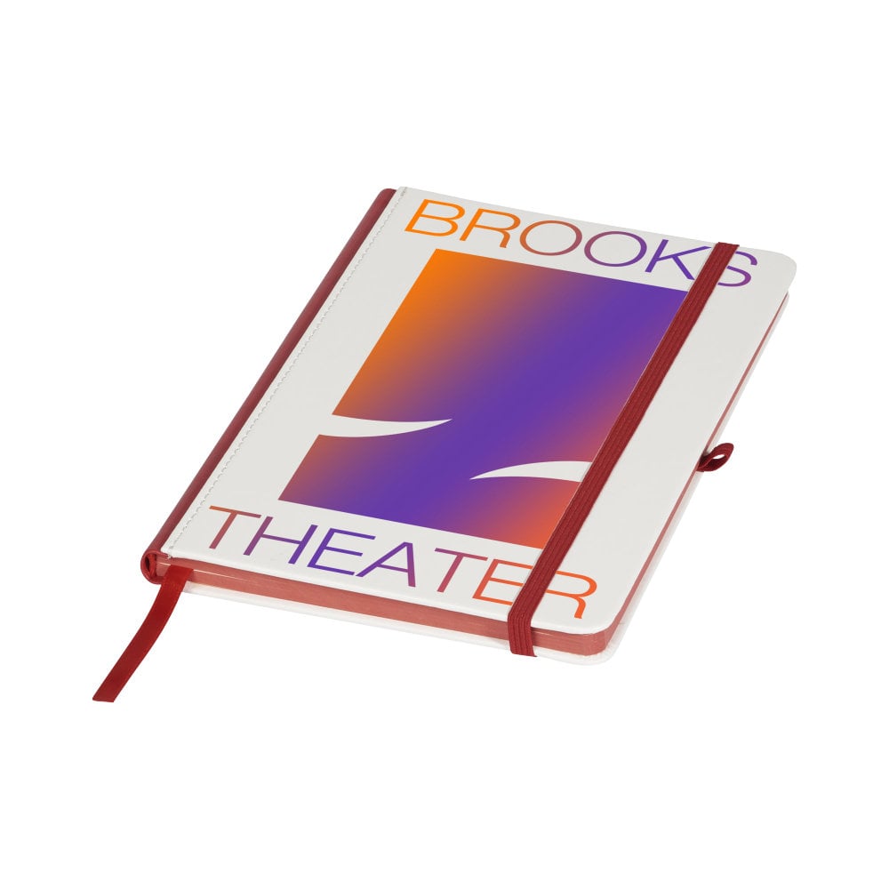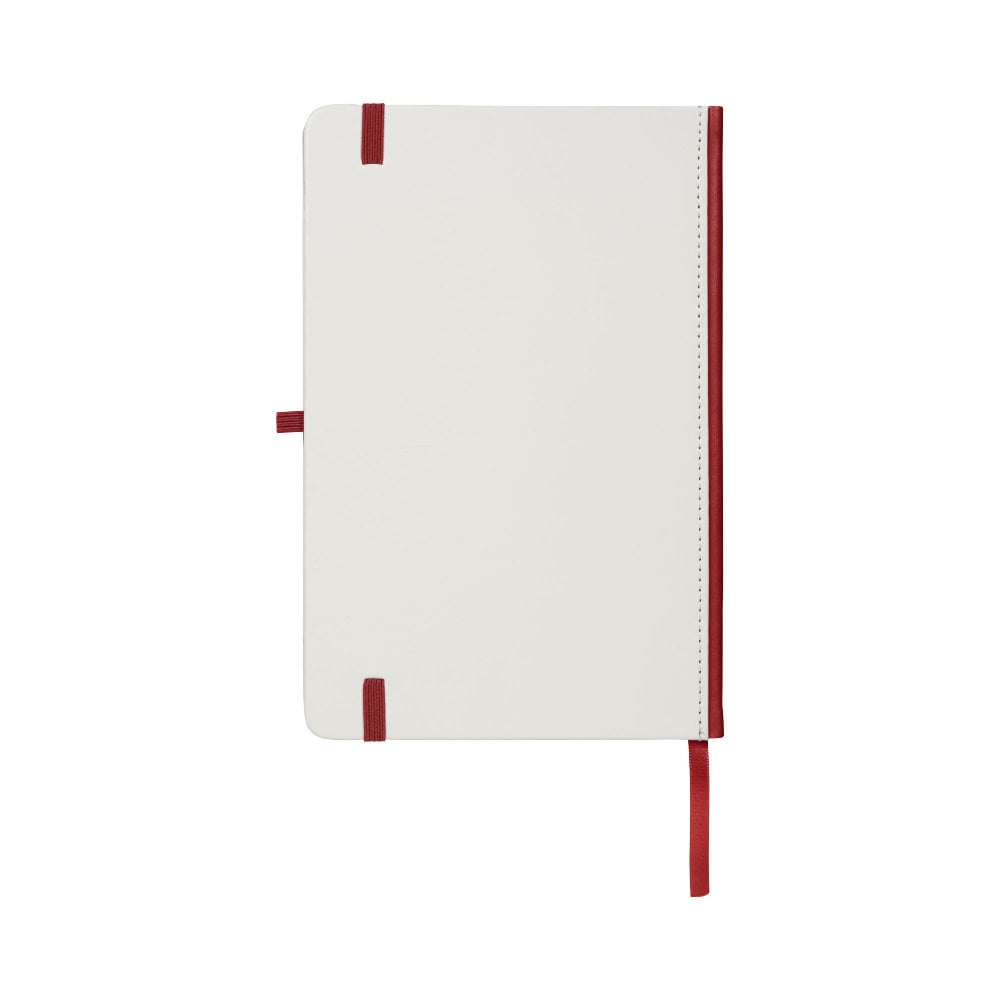 Nasz notatnik A5 to idealny wybór dla osób ceniących sobie elegancję i wygodę. Wykonany jest z twardej okładki, która posiada powłokę PU, dzięki czemu jest odporny na zarysowania. Kolorowy grzbiet i elastyczne zamknięcie pasujące do grzbietu dodają mu niepowtarzalnego charakteru. Zakładka w postaci wstążki i elastyczny uchwyt na długopis ułatwiają korzystanie z notatnika. Papier o gramaturze 80 g i 80 kremowych kartek w linie to idealne podłoże dla wydruków cyfrowych na całą okładkę.