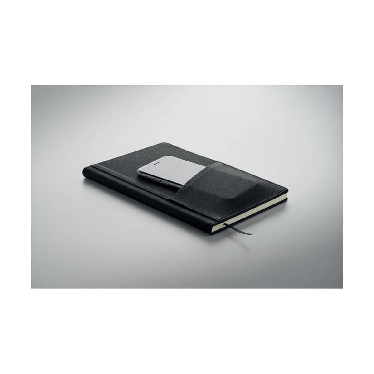 Notes A5 z kieszenią z przodu CINCO to znakomity, wielozadaniowy gadżet promocyjny, który wyróżni każdą kampanię. Wykonany z dbałością o detal, posiada twardą okładkę z PU, a w niej praktyczną kieszeń na telefon, dzięki czemu wszystkie niezbędne drobiazgi masz w jednym miejscu 🙂. Format A5 i 160 stron w linie (80 kartek) z papieru z recyklingu sprawiają, że jest lekki (zaledwie 0,260 kg) i poręczny, a zarazem wspiera ekologiczne wartości dla Twojej firmy. Wymiary 21 × 14 × 1,2 cm pozwalają swobodnie wsunąć go do torby lub plecaka, a dopasowana zakładka wstążkowa pomaga szybciej odnaleźć ważne notatki.