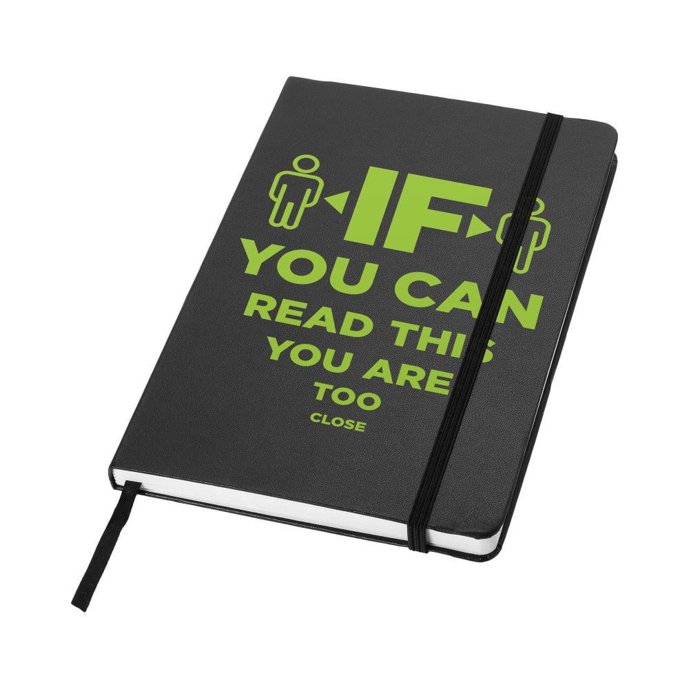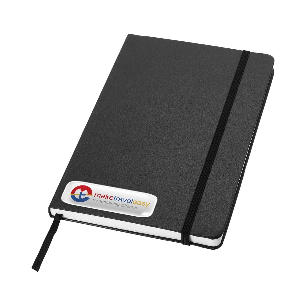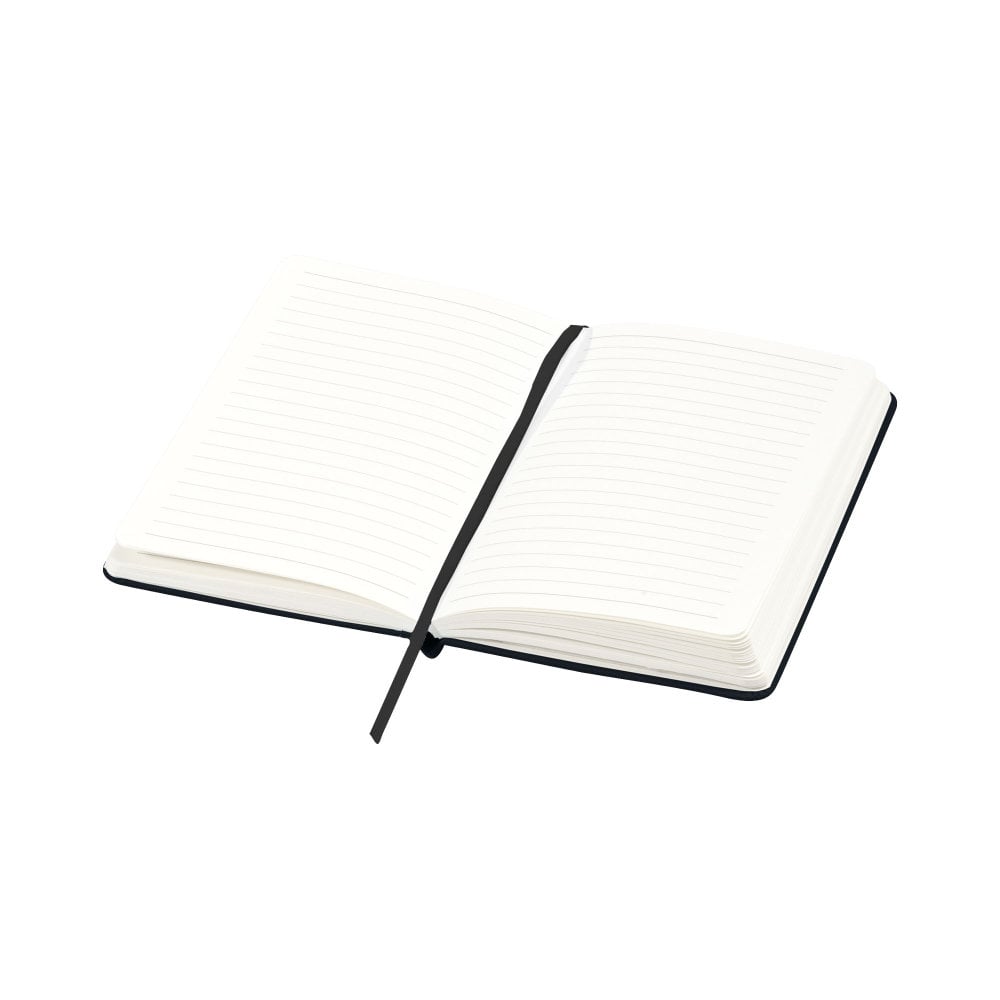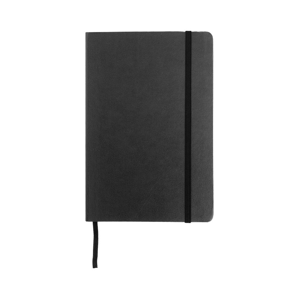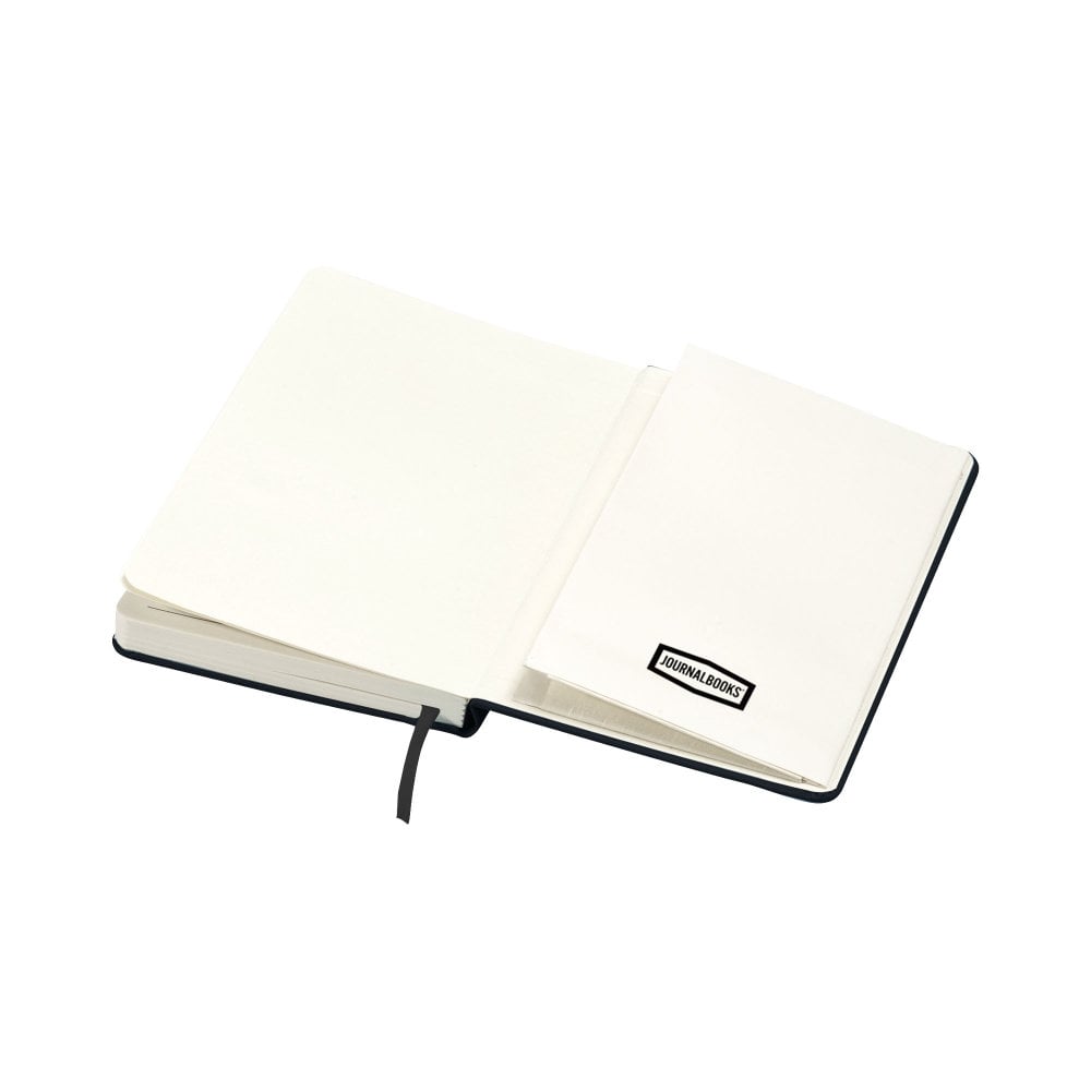 Ten klasyczny notatnik jest objęty wzorem zastrzeżonym. Posiada twardą okładkę w kolorze czarnym, która jest zamykana na gumkę. Wewnątrz znajduje się 80 kartek (80 g/m²) w linie, idealnych do zapisywania i dzielenia się notatkami. Na tyle notatnika znajduje się rozkładana kieszonka na małe karteczki. Notatnik A5 dołączony jest do etui upominkowego Journalbooks, dzięki czemu świetnie sprawdzi się jako prezent.