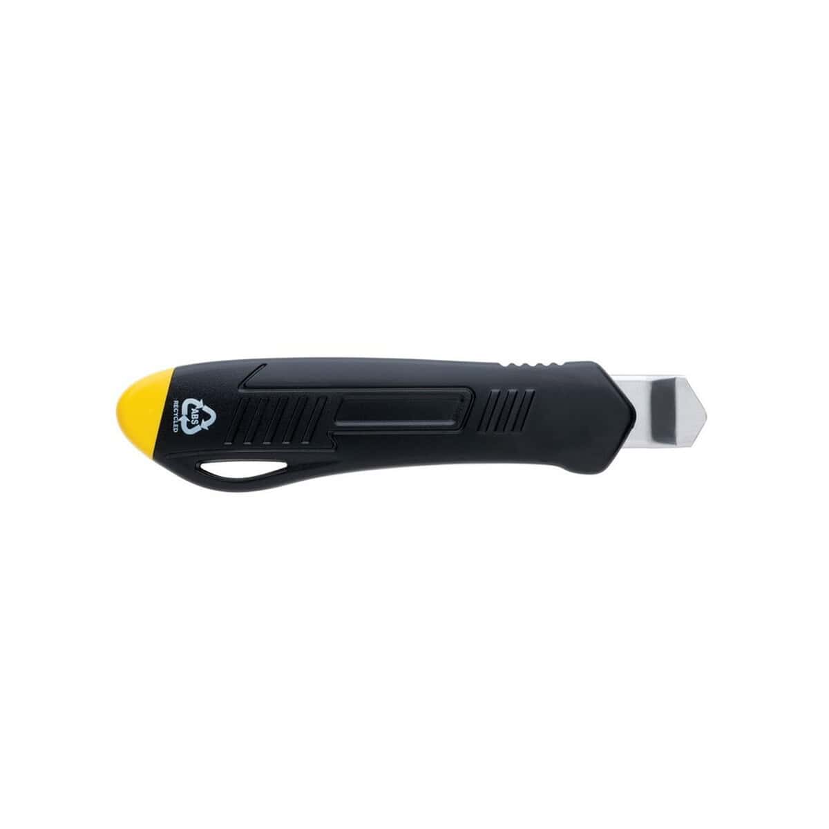 Nóż do tapet to znakomity gadżet promocyjny, który łączy solidność wykonania z ekologiczną odpowiedzialnością. Korpus z tworzywa rABS pochodzącego w 36 % z recyklingu (potwierdzone certyfikatem RCS) skrywa łamane ostrze ze stali nierdzewnej o długości 16,6 cm, zapewniające precyzyjne cięcie folii, kartonu czy papieru. Dzięki dołączonym wymiennym ostrzom (1 wewnątrz + 2 zapasowe) narzędzie posłuży przez długi czas, a wymiana segmentów przebiega szybko i bezpiecznie 😊.