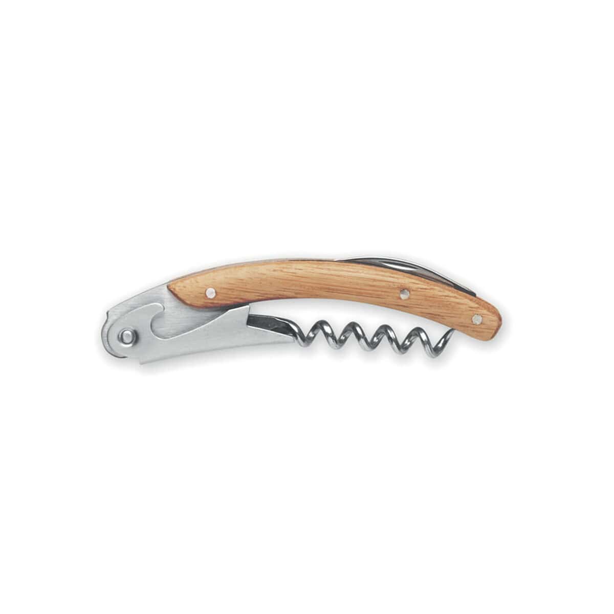 Nóż kelnerski ze stali nierdzew BLAITER to kompaktowy, a zarazem niezwykle reprezentacyjny gadżet, który zachwyci każdego miłośnika wina oraz konesera dobrego designu. Wykonany z wytrzymałej stali nierdzewnej i uzupełniony elegancką, bambusową okładziną, przyciąga wzrok naturalnym drewnianym kolorem oraz subtelnym połyskiem metalu. Jego podwójny korkociąg sprawia, że otwieranie butelek staje się płynne i bezwysiłkowe, a wbudowany nóż do folii pozwala w kilka sekund przygotować każdą butelkę do serwowania. To nie tylko praktyczne narzędzie, ale przede wszystkim doskonały nośnik logo i spersonalizowanego nadruku, który doda splendoru każdej degustacji 🍷.