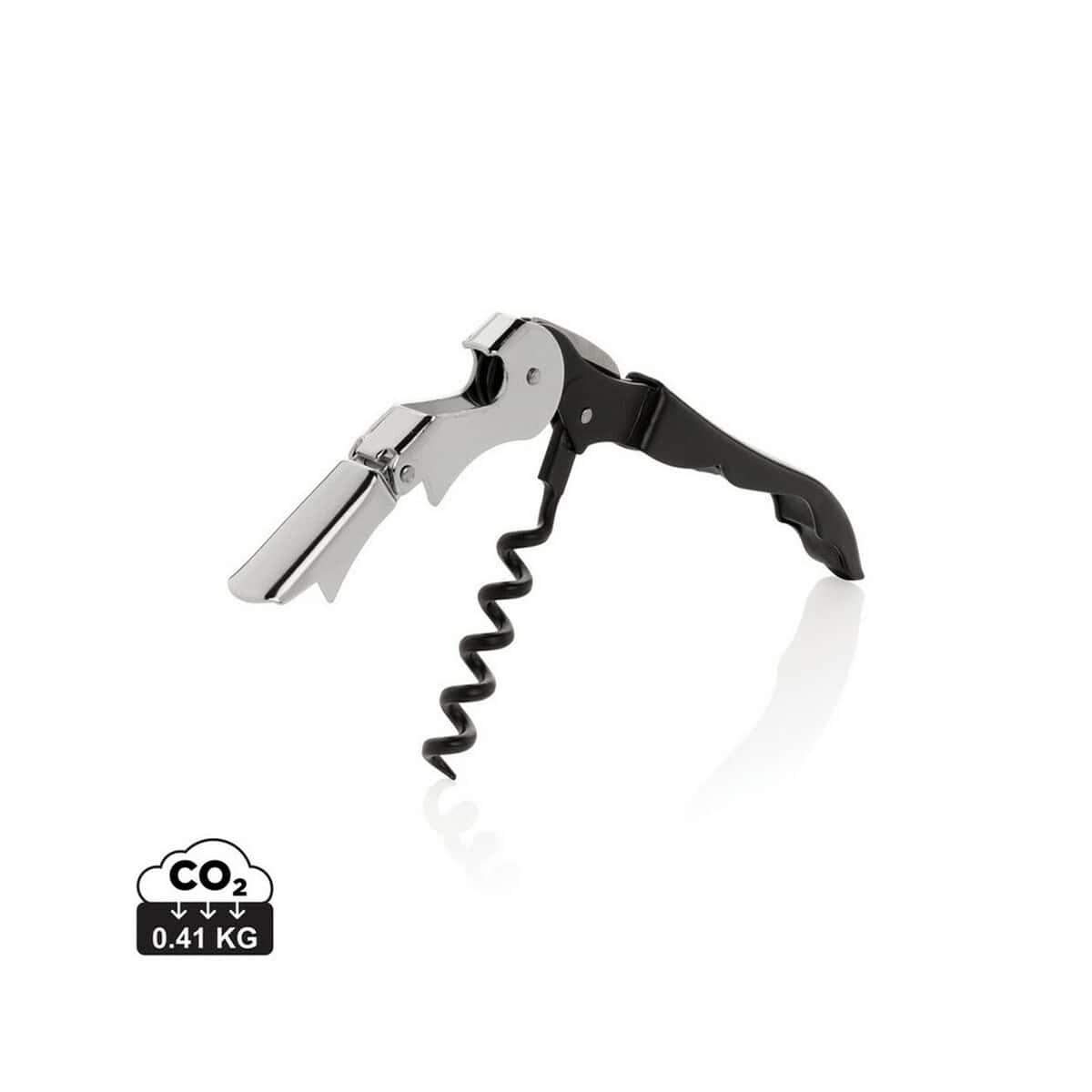 Cechy produktu: kompaktowa budowa, dwustopniowy korkociąg ułatwiający otwieranie nawet najbardziej wymagających butelek, nóż do folii dla płynnego serwowania, otwieracz do butelek do kapslowanych trunków, niskie obciążenie środowiska – ślad węglowy zaledwie 0,41 kg CO₂. To czyni go ekologicznym wyborem i znakomitym ambasadorem wartości Twojego brandu.
