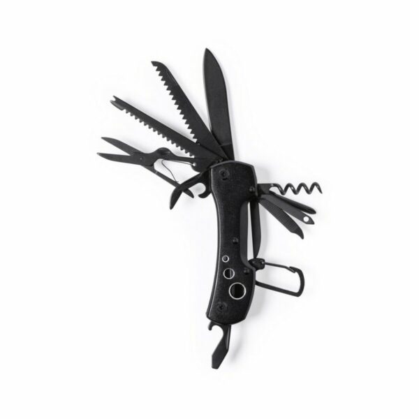 Nóż wielofunkcyjny to praktyczny i wszechstronny narzędzie idealne do wielu różnych sytuacji. Ten scyzoryk składa się z 13 funkcji, które pomogą Ci sprawnie i szybko wykonać prace, jak i bardziej zaawansowane projekty. W zestawie znajduje się otwieracz do puszek, otwieracz do butelek, śrubokręt, wykałaczka, nożyczki, łyżka, widelec, nóż, pilnik do paznokci, mały młotek, pęseta, szpikulec i skrobak. Jest to bardzo poręczny scyzoryk, który możesz mieć przy sobie wszędzie, gdzie tylko chcesz.