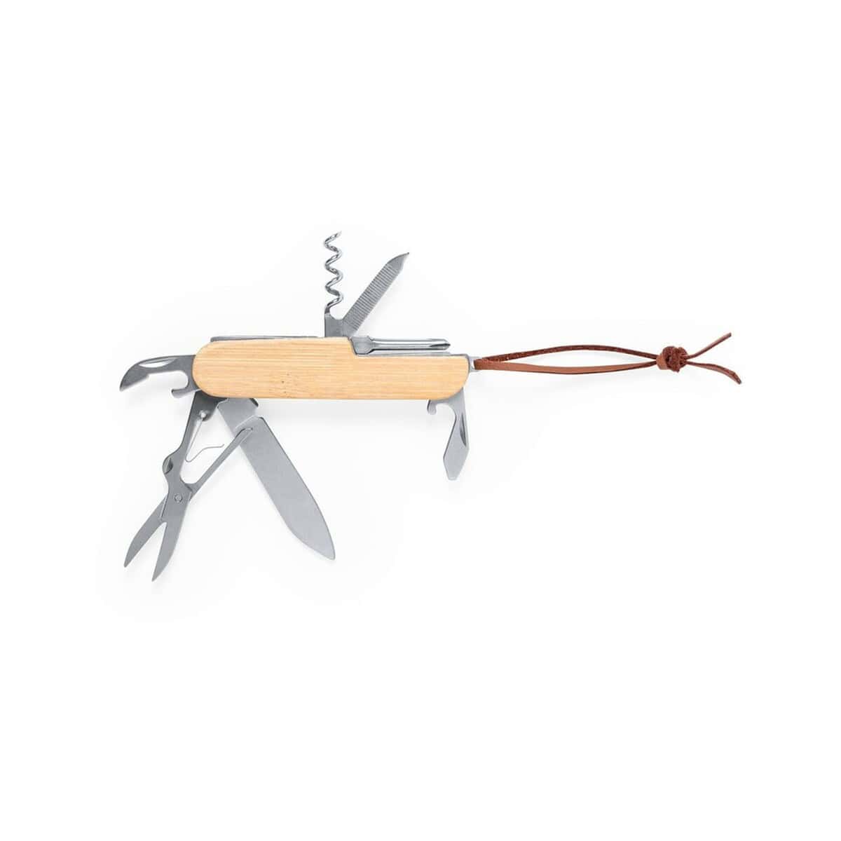 Nóż wielofunkcyjny, scyzoryk, 9 funkcji to kompaktowe, ale niezwykle wszechstronne narzędzie, które przyda się zarówno w biurze, jak i podczas wypraw w teren. W zgrabnej obudowie o wymiarach 9,4 × 2,5 × 1,5 cm ukryto aż 9 funkcji, w tym otwieracz, nożyczki, pilnik, śrubokręt oraz korkociąg. Naturalny uchwyt z bambusu w połączeniu ze stal nierdzewna gwarantuje wytrzymałość i elegancki, ekologiczny wygląd. Dzięki temu otrzymujesz narzędzie, które sprawdzi się wszędzie tam, gdzie liczy się niezawodność i styl. 🔧