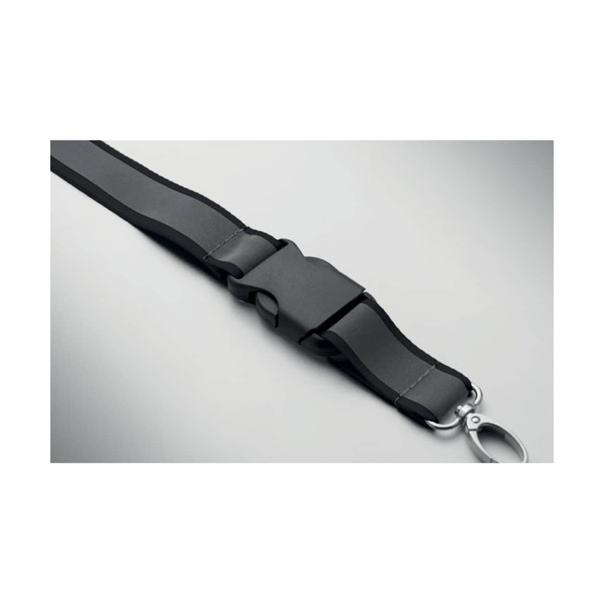 Atuty produktu, takie jak: wymiary 50 × 2,5 cm, waga 0,040 kg, materiał rPET oraz kolory fluorescencyjny żółty i czarny, czynią go odpornym na codzienne użytkowanie i przyjaznym w transporcie. Szeroki pasek pozwala nanieść wyrazisty nadruk w wielu kolorach, a odpinana klamra PP gwarantuje komfort podczas korzystania z identyfikatora.
