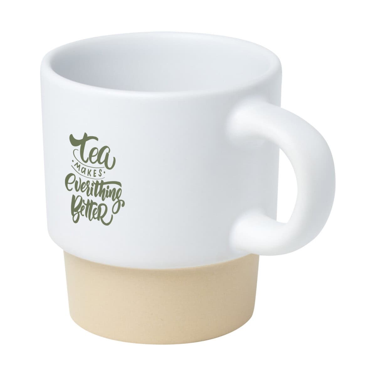 Olympia kubek do espresso z glinianym dnem, z możliwością układania w stosy, 130 ml to znakomity gadżet promocyjny dla branży gastronomicznej, hotelarskiej, kawowej, ale również biur architektonicznych czy agencji kreatywnych, które pragną wyróżnić się wysmakowanym detalem. Umieszczone na nim logo staje się subtelnym, a zarazem widocznym nośnikiem wizerunku.