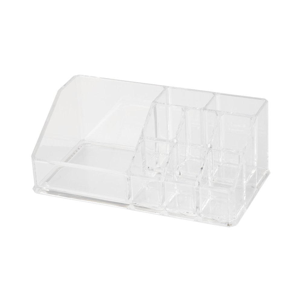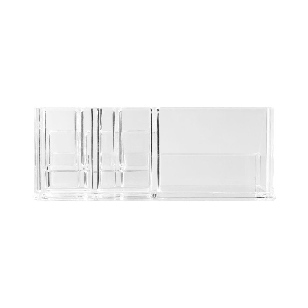 Organizer to praktyczne rozwiązanie dla osób, które chcą mieć w jednym miejscu wszystkie produkty do pielęgnacji i makijażu. Przydatny w łazience lub na stoliku do makijażu, posiada cztery poziomy i trzy przegrody. Każdy poziom ma przestrzeń do przechowywania drobnych produktów, a przegrody pozwalają na odłożenie większych kosmetyków. Dzięki temu produkt jest idealny do przechowywania wszelkich codziennych produktów pielęgnacyjnych i kosmetycznych. Organizer jest trwały, zapewniając długotrwałe użytkowanie. Wykonany jest z wysokiej jakości tworzywa sztucznego, dzięki czemu jest łatwy w utrzymaniu w czystości i estetyczny wygląd.
