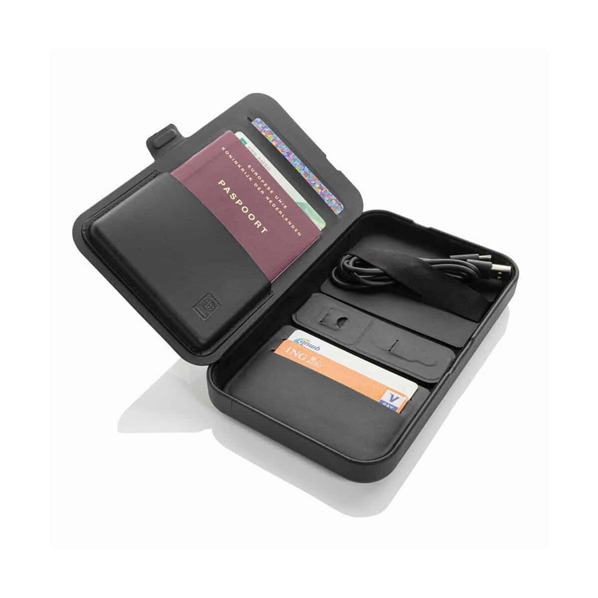 <pTen multifunkcyjny gadżet nie tylko chroni dokumenty i akcesoria, lecz również utrzymuje pełne baterie urządzeń, co podnosi komfort każdej podróży. Dodaj własne logo i wykorzystaj powierzchnię pod kreatywny nadruk, aby Twoja marka towarzyszyła odbiorcom w najważniejszych momentach dnia. To rewelacyjnie praktyczne i reprezentacyjne narzędzie reklamowe – wprost stworzone dla Twojej firmy! 🚀