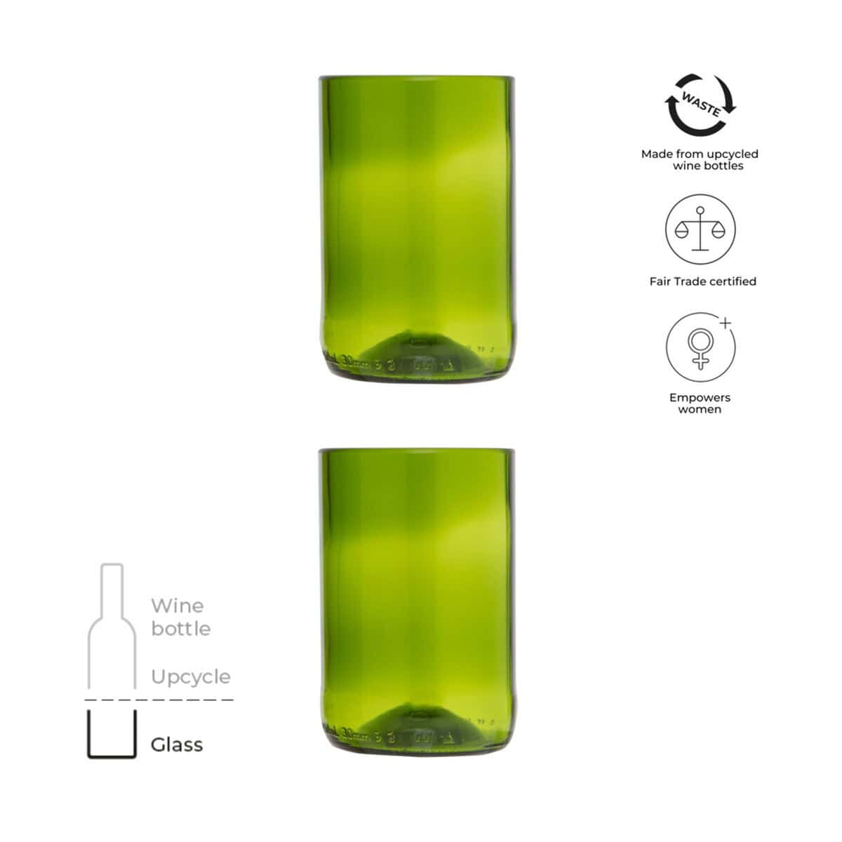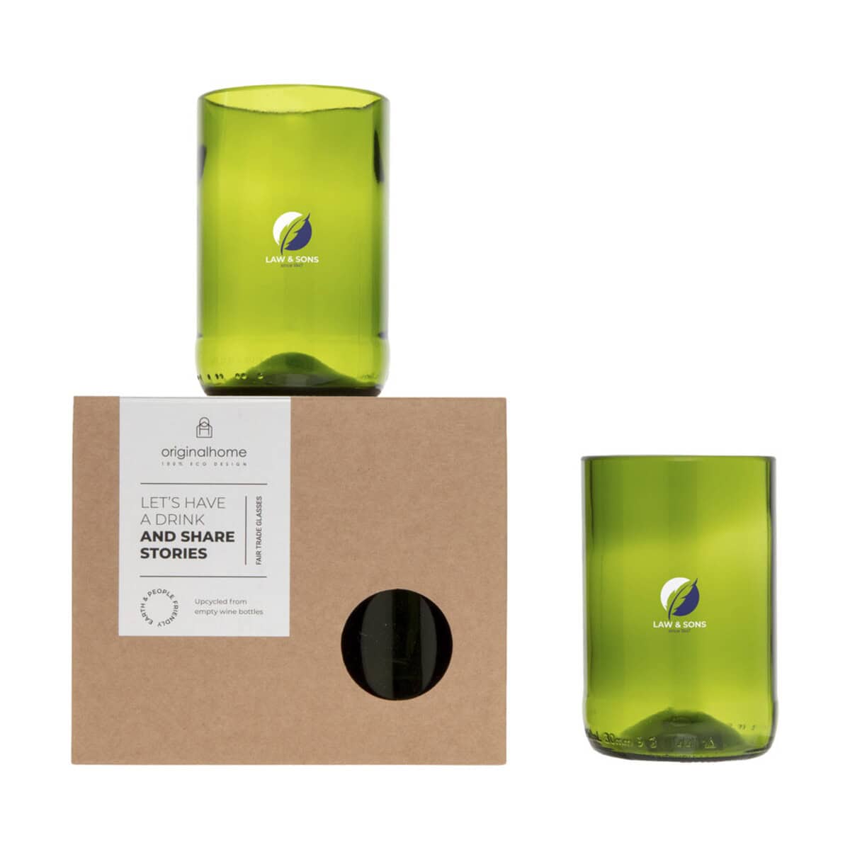 Originalhome zestaw szklany to wyjątkowy, ekologiczny gadżet, który odmieni każdy stół i podkreśli wizerunek marki 😊. Dwie szklanki o pojemności 280 ml zostały wykonane z butelek po winie, dzięki czemu otrzymujesz produkt nie tylko estetyczny, ale i przyjazny środowisku. Ich subtelny zielony kolor oraz gładka powierzchnia świetnie eksponują logo lub wyrazisty nadruk, tworząc eleganckie akcenty reklamowe na każdym firmowym wydarzeniu.