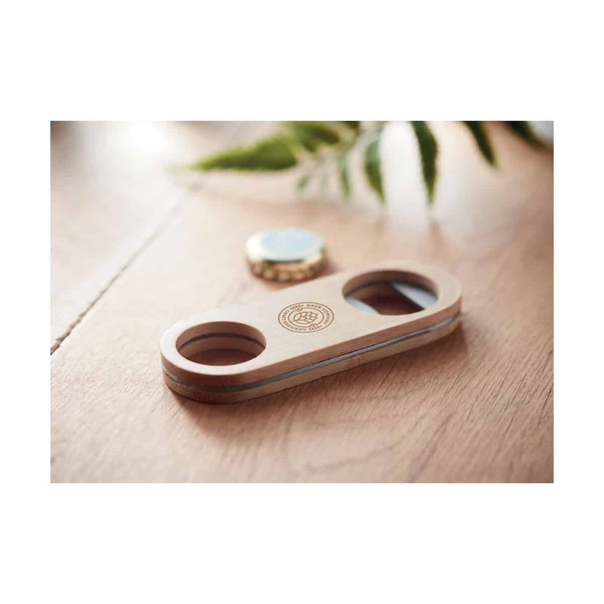 Drewniany kolor bambusowej powierzchni wprowadza ciepły, naturalny akcent, a jednocześnie stanowi doskonałe tło pod logo i nadruk. Precyzyjna powierzchnia gwarantuje wyraziste odwzorowanie każdego projektu – od minimalistycznego motywu po pełnokolorowy wzór. Dzięki temu Otwieracz do butelek VALBAMPER staje się nie tylko praktycznym narzędziem, lecz także mobilnym nośnikiem reklamy dla Twojej firmy. 🙂
