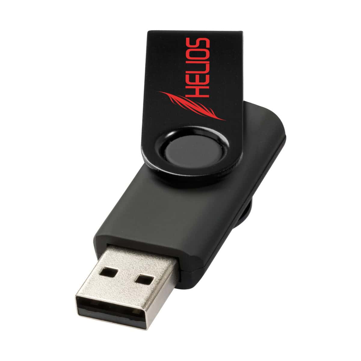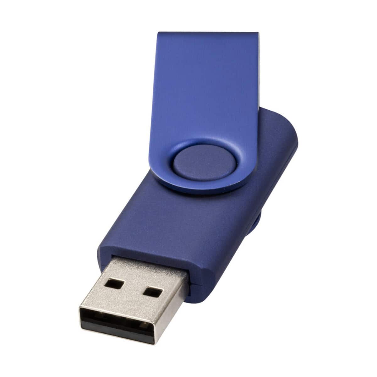 Klip obrotowy chroni złącze USB przed kurzem, a przy okazji zapewnia dużą przestrzeń na wyrazisty nadruk lub eleganckie logo. Dzięki temu reklamowe przesłanie pozostaje widoczne przez cały czas użytkowania. Model dostępny jest w dwóch uniwersalnych kolorach – niebieskim i czarnym – co ułatwia dopasowanie barwy do identyfikacji wizualnej dla Twojej firmy.