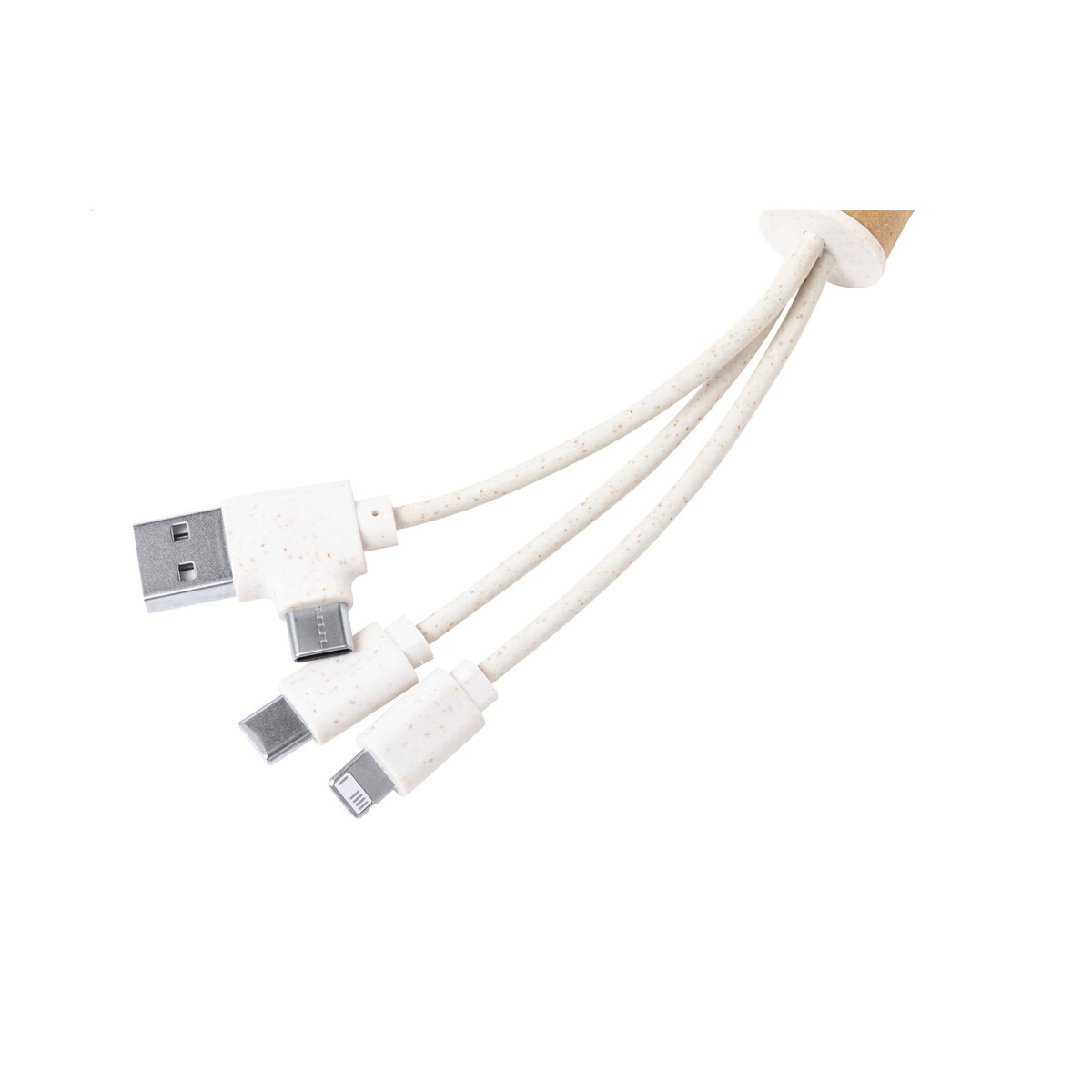 Paplen brelok kabel USB do ładowania to wszechstronny gadżet, który łączy praktyczność, ekologię i nowoczesny design. Dzięki niewielkim wymiarom ø18×135 mm i wadze zaledwie 26 g z łatwością przypniesz go do kluczy, torby czy plecaka, a zawsze będziesz mieć pod ręką przewód z końcówkami micro USB, USB-C oraz Lightning i wejściami USB i USB-C. Obudowa wykonana ze słomy pszenicznej, plastiku oraz papieru z recyklingu sprawia, że produkt jest przyjazny środowisku, co podkreśli zrównoważony wizerunek dla Twojej firmy 😊.