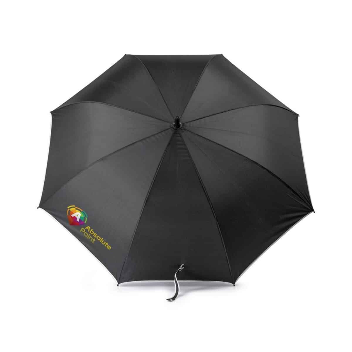 Parasol automatyczny | Bradyn to niezwykle stylowy i funkcjonalny towarzysz każdej deszczowej aury ☔. Jego elegancki czarny kolor przełamany białymi detalami sprawia, że przyciąga wzrok i świetnie wpisuje się w kategorię Parasole klasyczne z logo oraz Parasole sztormowe z logo. Dzięki wytrzymałej konstrukcji z włókna szklanego oraz metalowej ramie w białym kolorze zachwyca odpornością na porywisty wiatr, a automatyczny mechanizm otwierania gwarantuje wygodę użytkowania nawet w biegu. To gadżet, który z łatwością pomieści personalizowany nadruk, dlatego staje się znakomitym nośnikiem reklamy dla Twojej firmy 🙂.