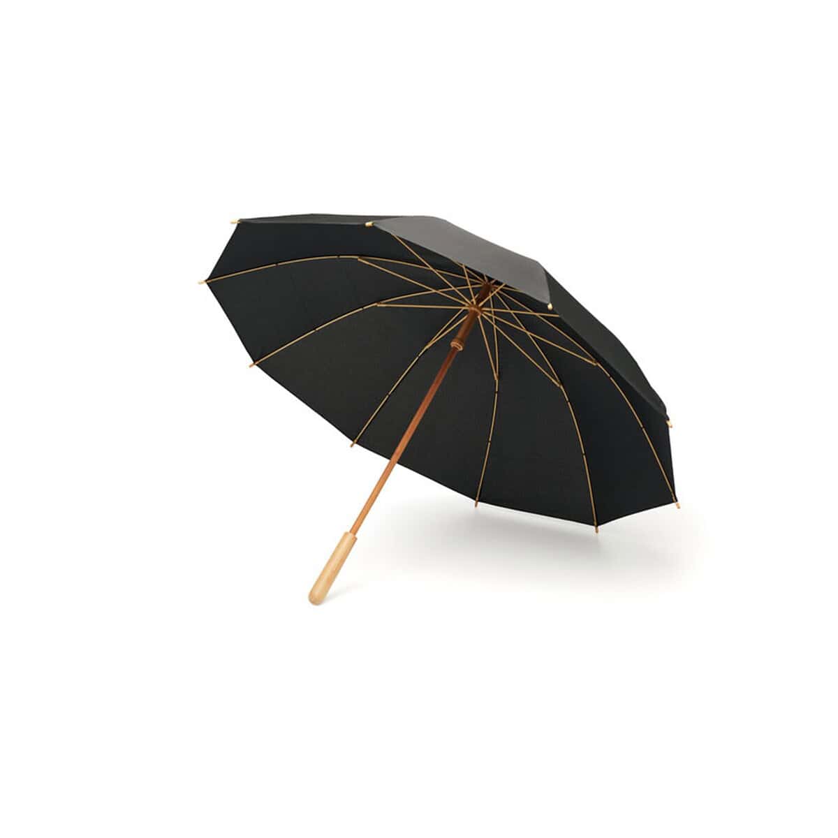Produkt wyróżnia się ekologicznym charakterem: czasza uszyta z 190T RPET Pongee powstała z recyklingowanych butelek PET, a trzon, końcówki i uchwyt wykonane są z bambusa – naturalnego, szybko odnawialnego surowca. Elastyczne żebra z włókna szklanego w kolorze naturalnym czynią go wiatroodpornym, dzięki czemu nie straszne mu nagłe podmuchy podczas jesiennych sztormów. Ręczne otwieranie i zamykanie gwarantuje kontrolę i bezpieczeństwo użytkowania.