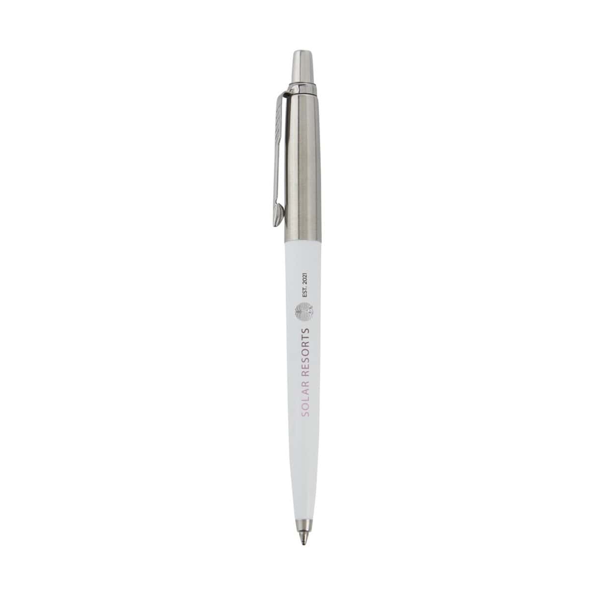 Parker Jotter długopis kulkowy z recyklingu to prawdziwie ekologiczny gadżet, który łączy w sobie elegancję, funkcjonalność i troskę o planetę. Wykonana z tworzyw sztucznych oraz stali nierdzewnej pochodzących z odzysku, obudowa o wymiarach 12,9 × Ø 0,85 cm i lekkiej wadze 11 g jest odporna na zarysowania oraz wyjątkowo trwała. Dzięki wkładowi Quinkflow® możesz zapisywać aż 3500–5500 m tekstu bez przerywania, delektując się płynnym, niebieskim atramentem. Ten model zachwyca czterema kolorami korpusu – białym, czerwonym, czarnym i niebieskim – co pozwala łatwo dopasować go do wizerunku marki. Pierścień ze stali nierdzewnej z recyklingu podkreśla ekologiczny charakter, a duża, gładka powierzchnia korpusu umożliwia wyraźny nadruk lub logo 🙂