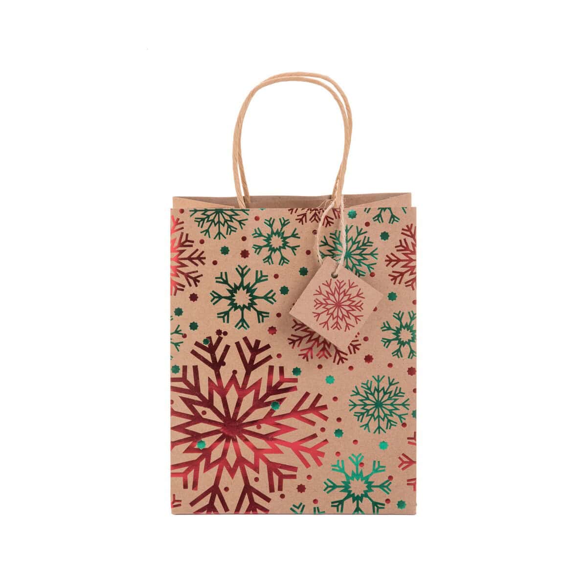 Pekkola S Torba na prezenty świąteczne, mała to prawdziwie świąteczny gadżet, który zachwyci każdego obdarowanego już w pierwszej chwili 🎁. Wykonana z papieru z recyklingu 140 g/m², posiada elegancki bożonarodzeniowy wzór wytłoczony folią, skręcane uchwyty oraz praktyczną zawieszkę prezentową. Jej kompaktowe, a jednocześnie pojemne wymiary 180 × 230 × 105 mm i lekka waga 38 g gwarantują wygodę pakowania, transportu oraz przechowywania. Kolorowa paleta nadruku doskonale koresponduje z zimową aurą i dodaje prezentom magicznego blasku. 🌟