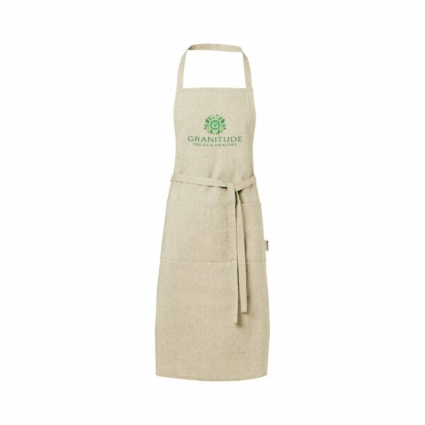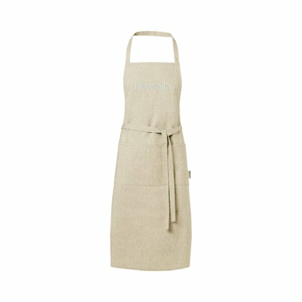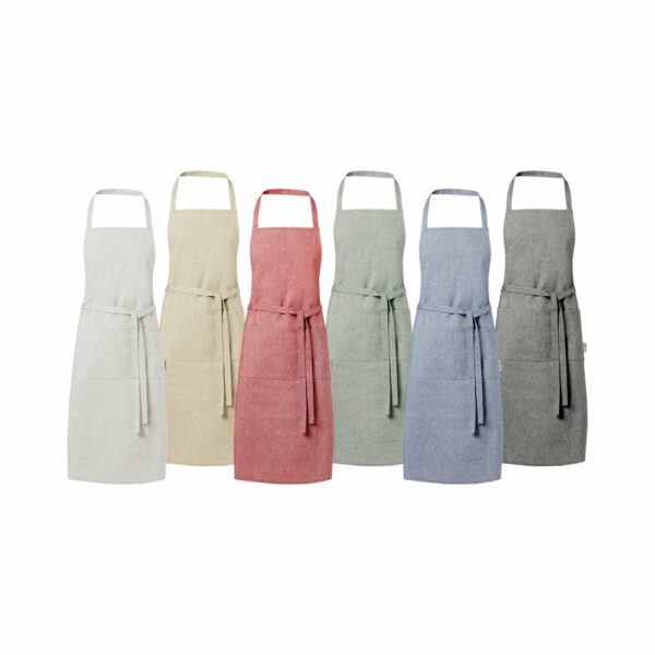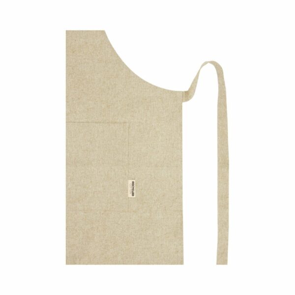 Fartuch wykonany z mieszanki bawełny i poliestru z recyklingu jest idealnym rozwiązaniem dla użytkowników, którzy cenią sobie wygodę i trwałość. Gramatura 200 g/m² jest odpowiednio wytrzymała, aby zapewnić wygodę noszenia. Posiada dwa przylegające kieszenie o łącznych wymiarach 45 x 20 cm oraz wiązanie z tyłu o długości 1 m. Bawełna poddana recyklingowi pochodzi z tzw. wstępnych odpadów konsumpcyjnych wytwarzanych przez zakłady włókiennicze w trakcie procesu cięcia. Dzięki temu możliwe są niewielkie różnice w kolorze, co wyraźnie podkreśla autentyczność wyglądu. Długość paska na szyję wynosi 55 cm, co sprawia, że fartuch jest idealny do użytku codziennego.