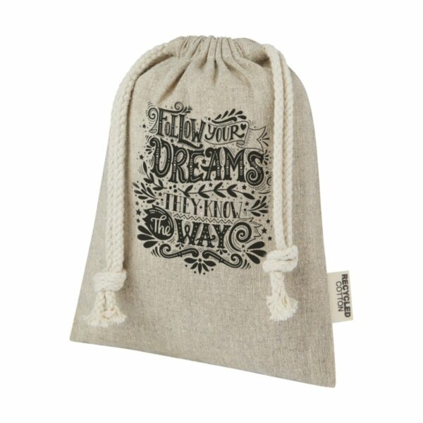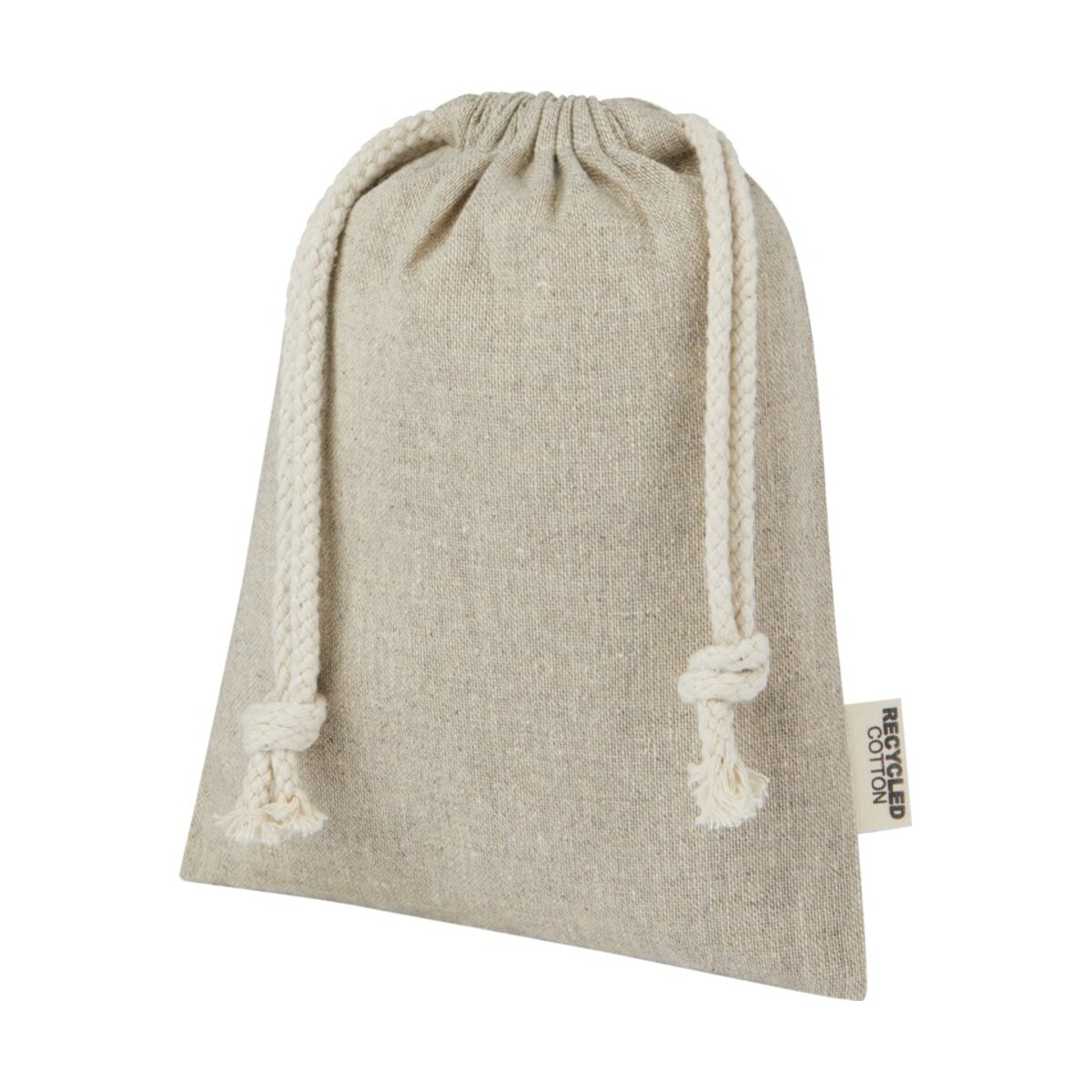Ta torba upominkowa to doskonały wybór dla tych, którzy cenią sobie produkty wykonane z recyklingu bawełny. Jest certyfikowana zgodnie z GRS i zapinana na sznurek bawełniany, co czyni ją wyjątkowo praktyczną do prezentów i przechowywania przedmiotów. Torba jest niewielka, bo jej wymiary to tylko 15 x 20 cm. Dzięki temu można ją wszędzie zabrać ze sobą.