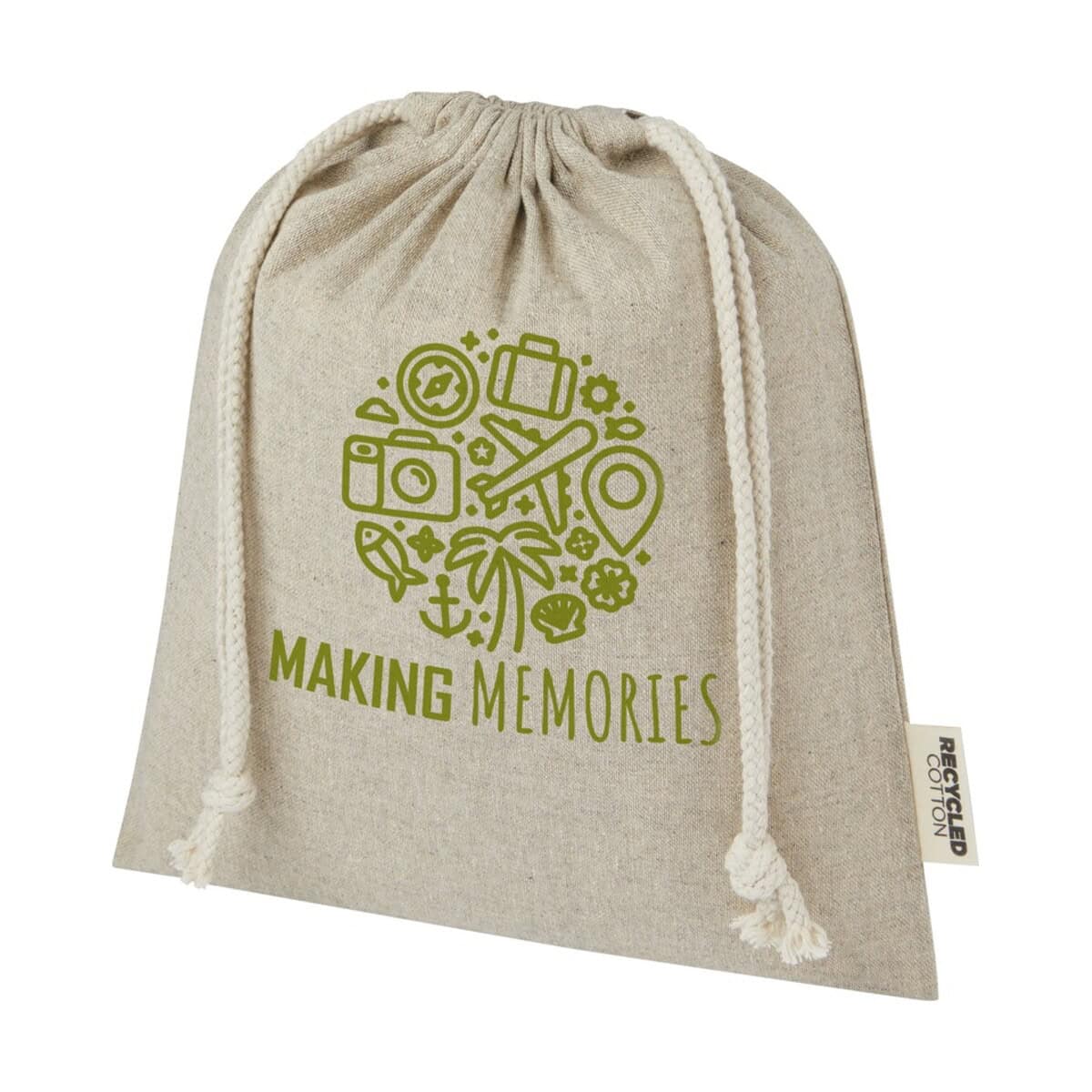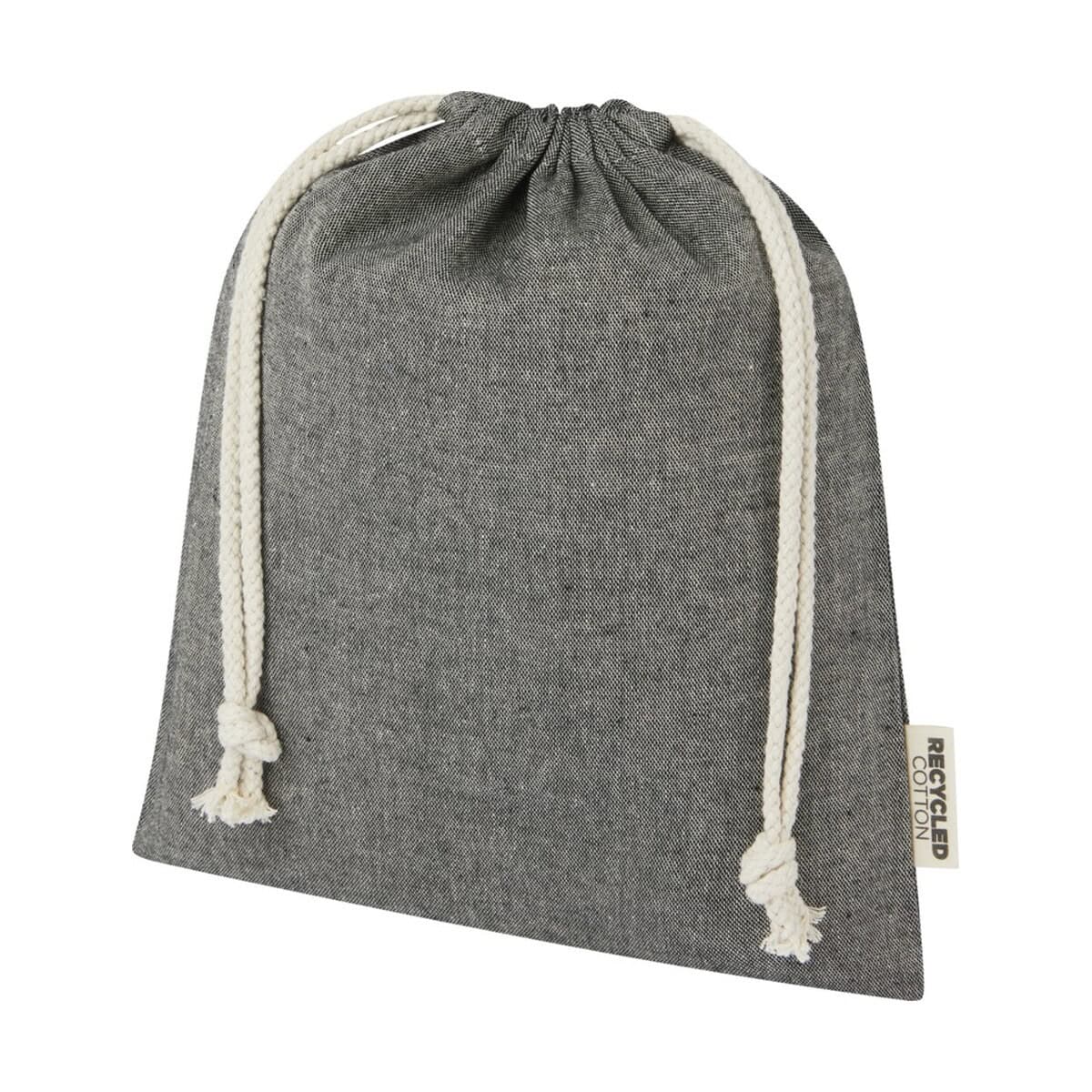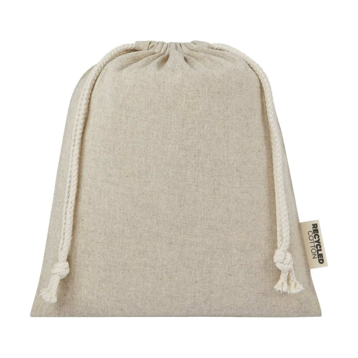 Pheebs torba na prezent z bawełny z recyklingu o gramaturze 150 g/m² i z certyfikatem GRS, średnia o pojemności 1,5 l to ekologiczny hit, który łączy w sobie estetykę, funkcjonalność i odpowiedzialność za środowisko. Uszyta z przyjemnej w dotyku mieszanki Recycled cotton i Recicled Poliester, waży zaledwie 30 g, a jednocześnie pomieści drobiazgi o łącznej pojemności 1,5 l. Dzięki praktycznemu zamknięciu na sznurek, zawartość jest bezpieczna, a elegancki wygląd torby podkreśla każdy upominek. Jej kompaktowe wymiary: 25 x 30 cm sprawiają, że bez trudu zmieści się w torebce czy w szufladzie biurka. Dostępne kolory – czarny, niebieski i piasek pustyni – pozwalają łatwo dopasować ją do identyfikacji wizualnej marki 🙂