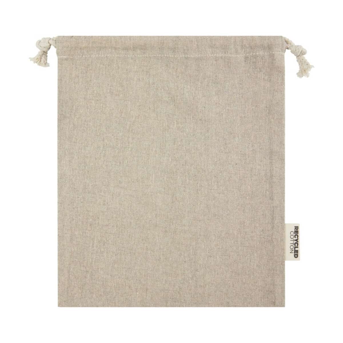 Pheebs torba na prezent z bawełny z recyklingu o gramaturze 150 g/m² i z certyfikatem GRS, średnia o pojemności 1,5 l świetnie sprawdzi się w branży kosmetycznej, jubilerskiej, e-commerce czy eventowej. Klienci sklepów ekologicznych mogą w niej otrzymywać próbki, a firmy odzieżowe zapakują w nią biżuterię lub akcesoria. To także praktyczne rozwiązanie dla hoteli – zapakuj mini-zestaw powitalny i zachwyć gości już od pierwszej chwili pobytu.