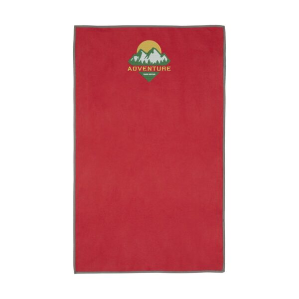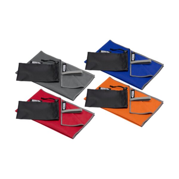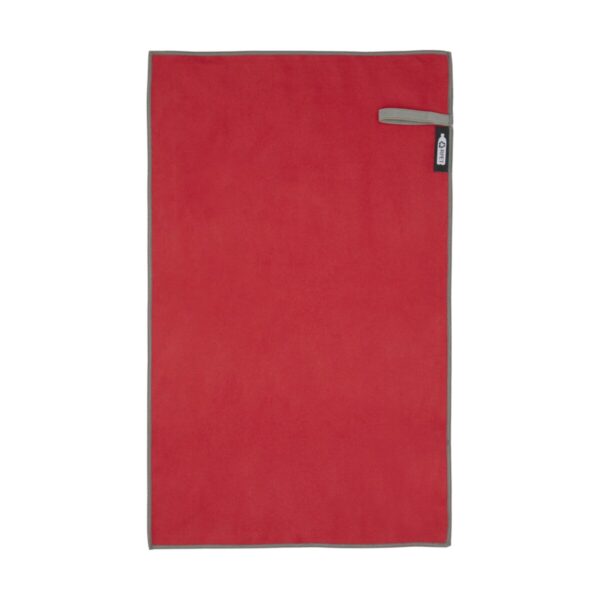 Pieter bardzo chłonny, lekki i szybko schnący ręcznik sportowy wykonany z trwałego i niezwykle miękkiego materiału. Po złożeniu i zabezpieczeniu elastyczną opaską ręcznik zmniejsza się do niewielkich rozmiarów, dzięki czemu nadaje się do zabrania na siłownię, basen lub na wędrówkę z plecakiem albo kemping. Ręcznik ma wymiary 50 x 30 cm i jest wykonany w 90% z poliestru pochodzącego z recyklingu z certyfikatem GRS i w 10% z nylonu. Można go prać w pralce w temperaturze 40°C. Dostarczany z woreczkiem do przechowywania (15,5 x 10 cm) wykonanym z plastiku PET z recyklingu, który zapewnia doskonałe miejsce na nadruk logo.