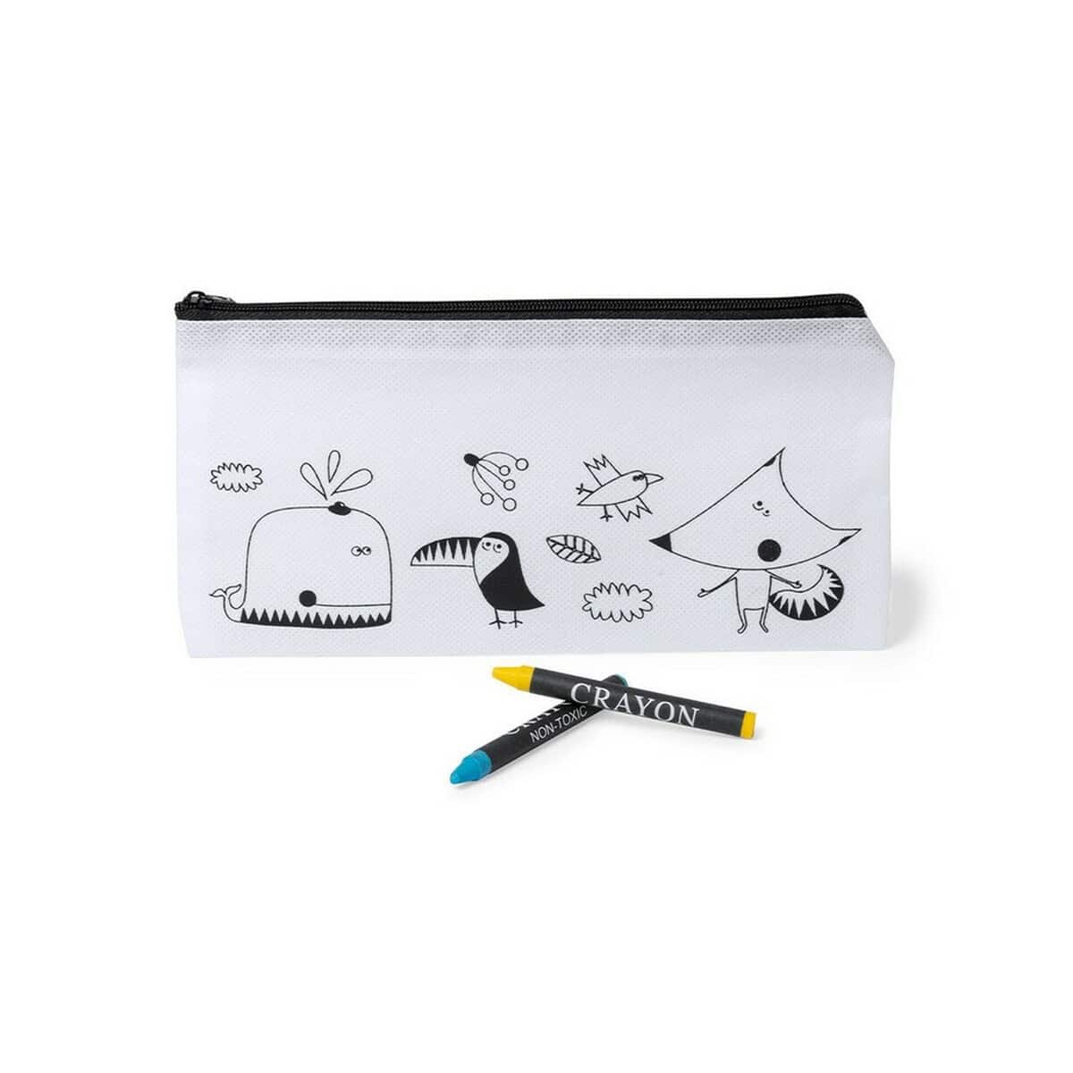 Piórnik do kolorowania, kredki to znakomity gadżet, który w niebanalny sposób pozwala promować markę w branży edukacyjnej, turystycznej czy eventowej. Wykonany z trwałego materiału: non-woven, o lekkiej wadze: 38 g, ten biały piórnik ma kompaktowe wymiary: 22 × 11 cm, dzięki czemu zmieści się w szkolnym plecaku, torebce konferencyjnej czy hotelowym welcome packu. W zestawie znajduje się pięć kolorowych kredek świecowych, które zachęcają do kreatywnej zabawy i personalizacji powierzchni, co sprawia, że piórnik staje się interaktywną reklamą 🙂.