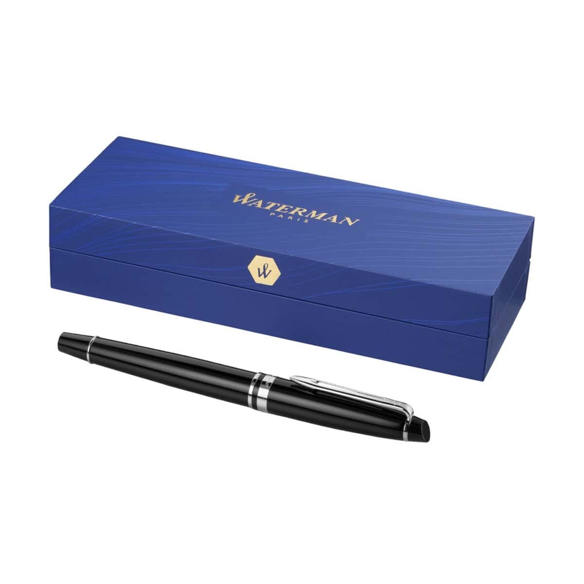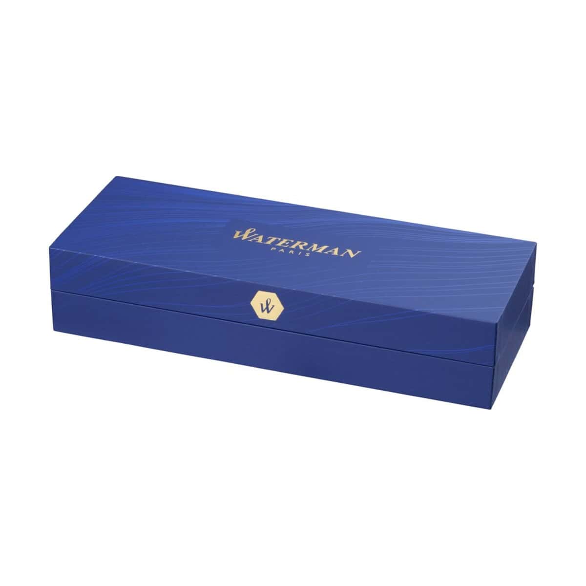 Korpus wykonano z wytrzymałego mosiądzu w głębokim, eleganckim czarnym kolorze, co w połączeniu z błyszczącymi wykończeniami gwarantuje wyrafinowany, biznesowy styl. Perfekcyjnie gładka stalówka w połączeniu z dołączonym nabojem z atramentem gwarantuje natychmiastową gotowość do pisania, a firmowe pudełko upominkowe Waterman czyni z niego prezent najwyższej klasy 😀.