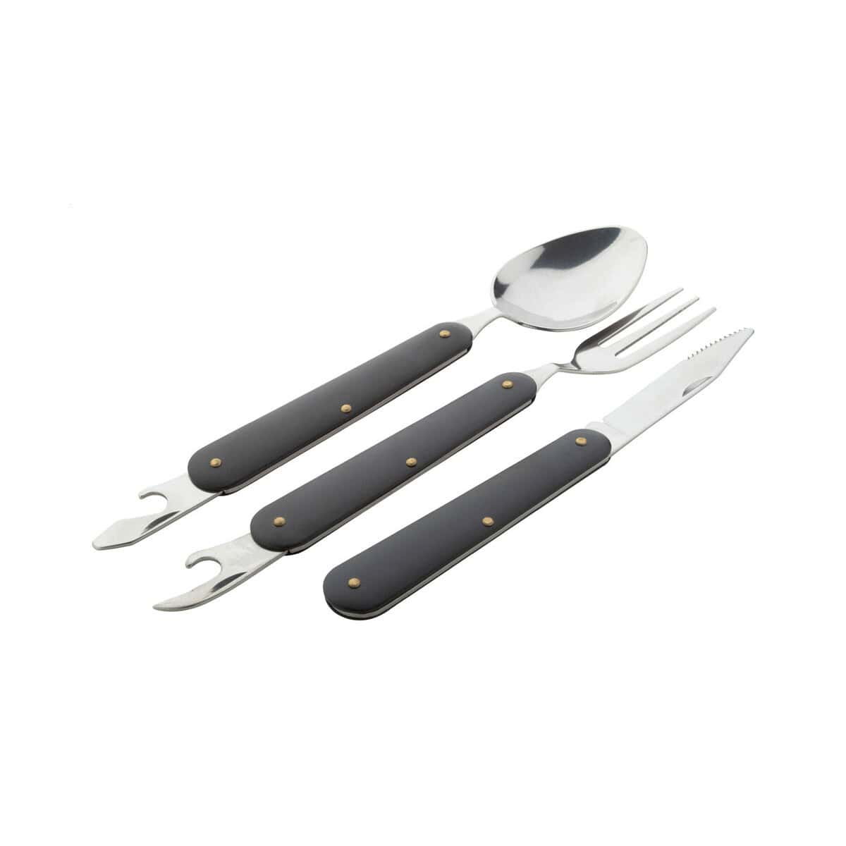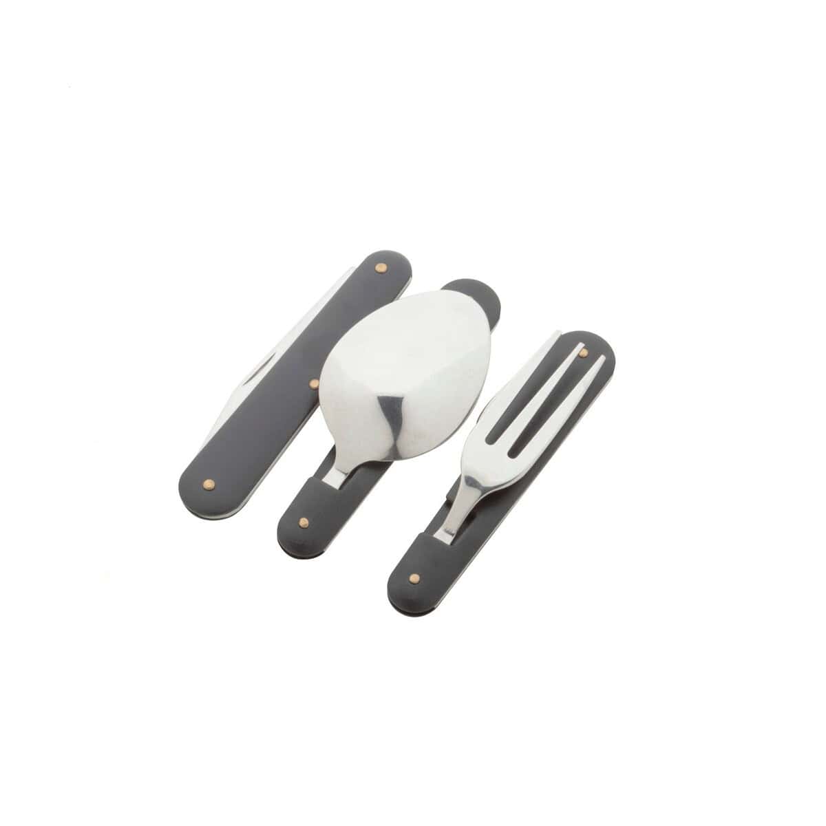 Ten składany komplet zawiera wszystko, czego potrzebujesz: widelec, nóż i łyżkę. Po złożeniu każdy element perfekcyjnie chowa się w czarnym etui, które chroni ostrza i ułatwia transport. Kolor czarny nadaje całości nowoczesnego, uniwersalnego charakteru, dzięki czemu produkt prezentuje się elegancko zarówno przy ognisku, jak i na firmowym cateringu w plenerze.