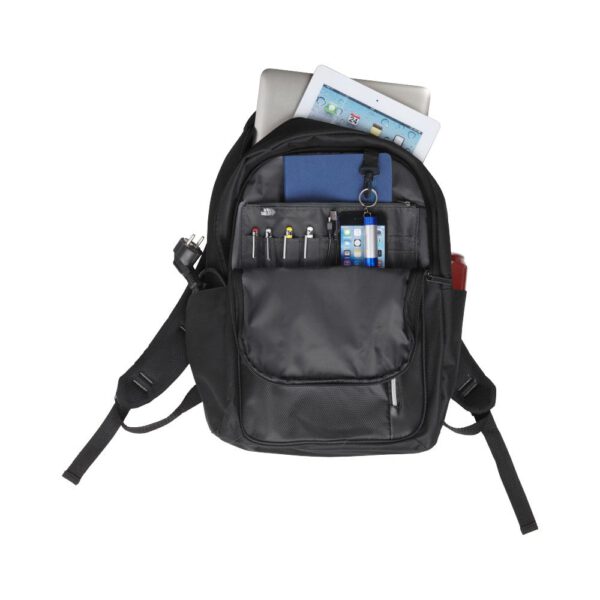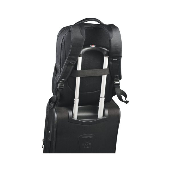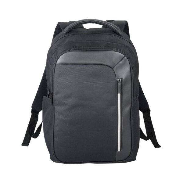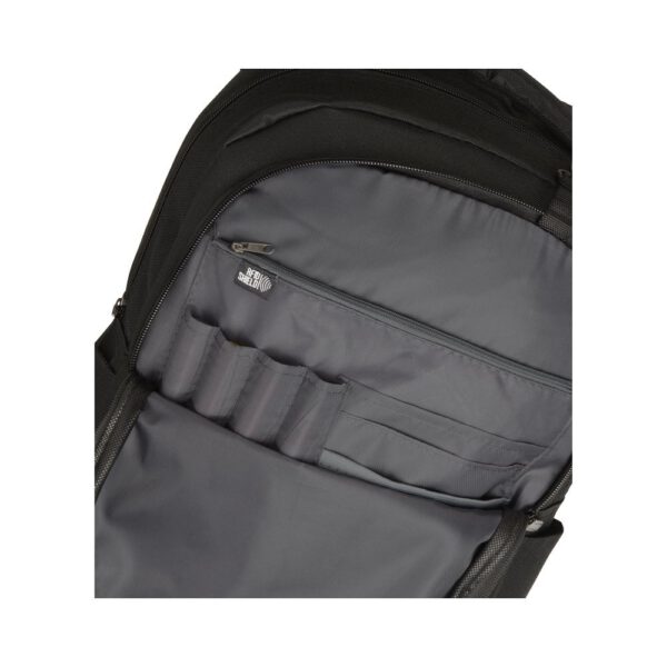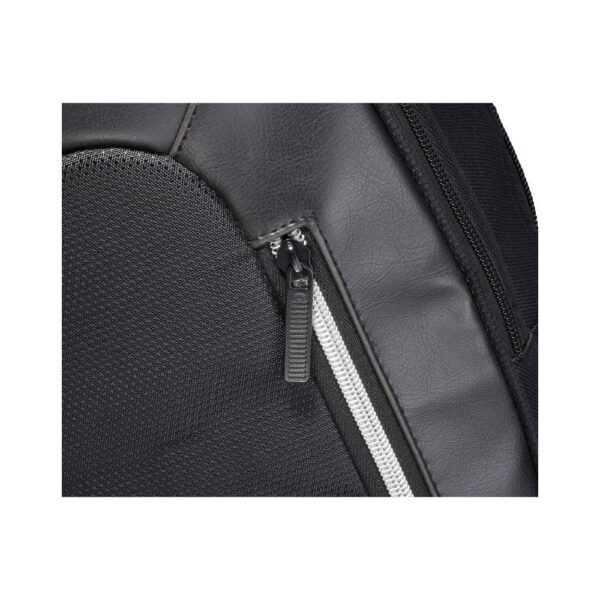 Plecak na laptop 15″ zapewnia wygodę i bezpieczeństwo użytkowania. Posiada przednią kieszeń z miejscem na klucze i kieszonkę z ochroną RFID na karty kredytowe. Główny przedział plecaka jest zamykany na zamek, a w środku znajduje się oddzielna wyściełana kieszeń na laptopa 15″ oraz tablet. Zamek na froncie umożliwia szybki dostęp do przedniej kieszeni. Dwie dodatkowe kieszenie boczne zapewnią dodatkowe miejsce na przedmioty. Wyściełane, regulowane szelki zapewniają komfort użytkowania. Plecak posiada również rączkę do przenoszenia oraz uchwyt umożliwiający założenie plecaka na walizkę. Ze względu na rodzaj barwników tkanin, splotów i nadruków mogą występować niewielkie różnice w kolorze rzeczywistego produktu.