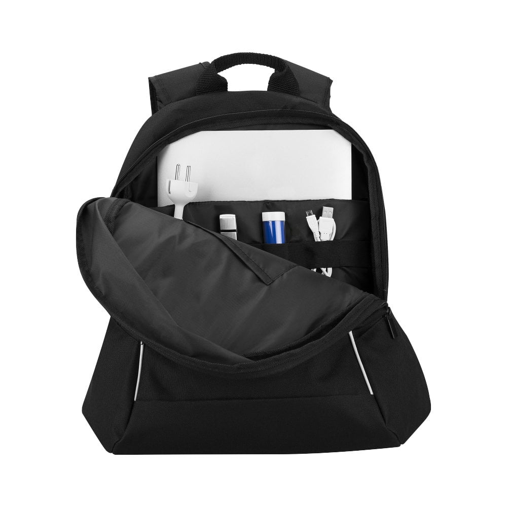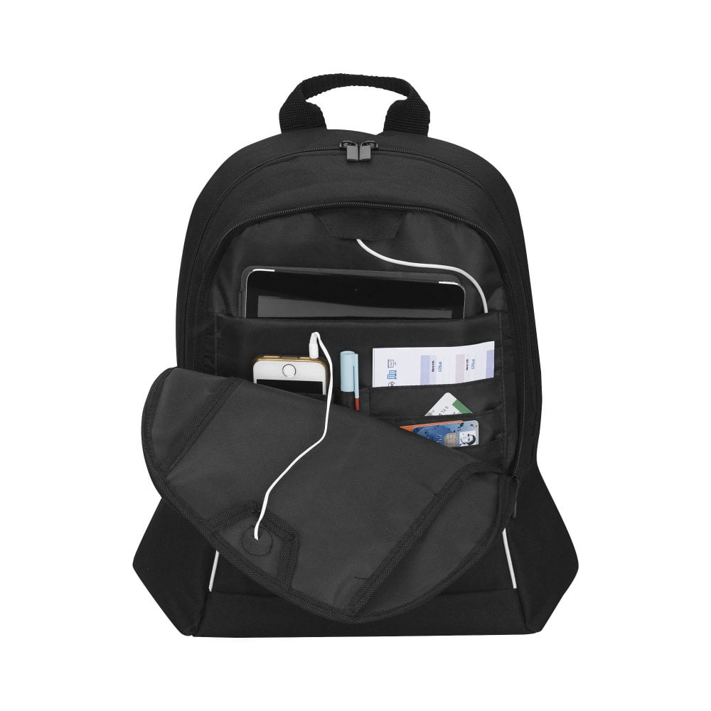 Ten ekskluzywny plecak dla aktywnych posiada komorę główną zamykaną na zamek błyskawiczny, wyściełaną przegrodę na laptopa 15.6” oraz elastyczny organizer na akcesoria elektroniczne. W ściankę przednią plecaka wbudowany jest port prowadzący, dzięki czemu można łatwo naładować tablet lub telefon komórkowy. Komora główna wyposażona jest w dedykowany rękaw na tablet, kieszonkę na telefon komórkowy oraz przepastny organizer. Przydatnym dodatkiem jest port na słuchawki, pozwalający łatwo połączyć urządzenie grające ukryte w plecaku ze słuchawkami.