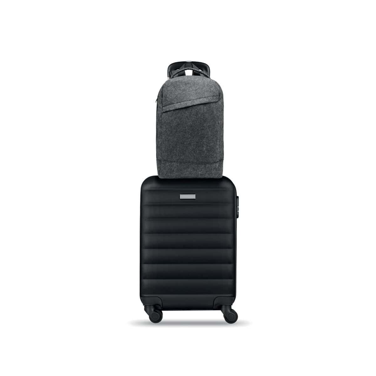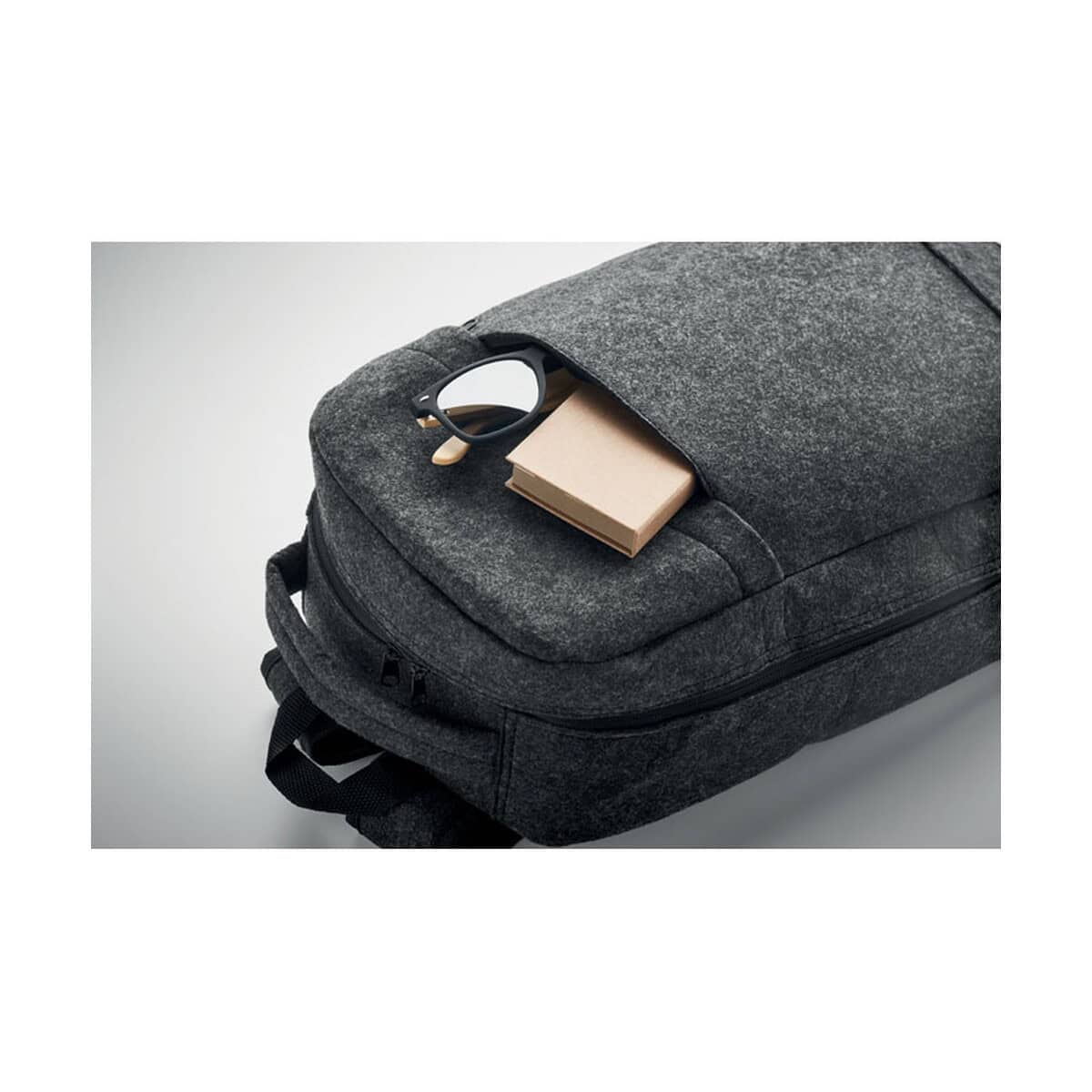 Plecak na laptopa 13 cali LLANA to pełen charakteru, nowoczesny gadżet stworzony z myślą o aktywnych użytkownikach ceniących minimalizm i ekologię 😊. Wykonany z wytrzymałego filcu RPET w uniwersalnej, eleganckiej szarości, łączy w sobie funkcjonalność i styl, stając się trafionym nośnikiem Twojego logo. Filcowa tkanina nie tylko dobrze chroni 13-calowy komputer, lecz także prezentuje się niezwykle estetycznie, dzięki czemu plecak znakomicie sprawdzi się w miejskiej dżungli, na uczelni czy w podróży służbowej. Grube, wyściełane szelki odciążają ramiona, a dyskretny pasek na walizkę ułatwia przesiadki na lotniskach – to rozwiązanie wręcz stworzone dla Twojej firmy, która chce zadbać o komfort swoich pracowników lub klientów.