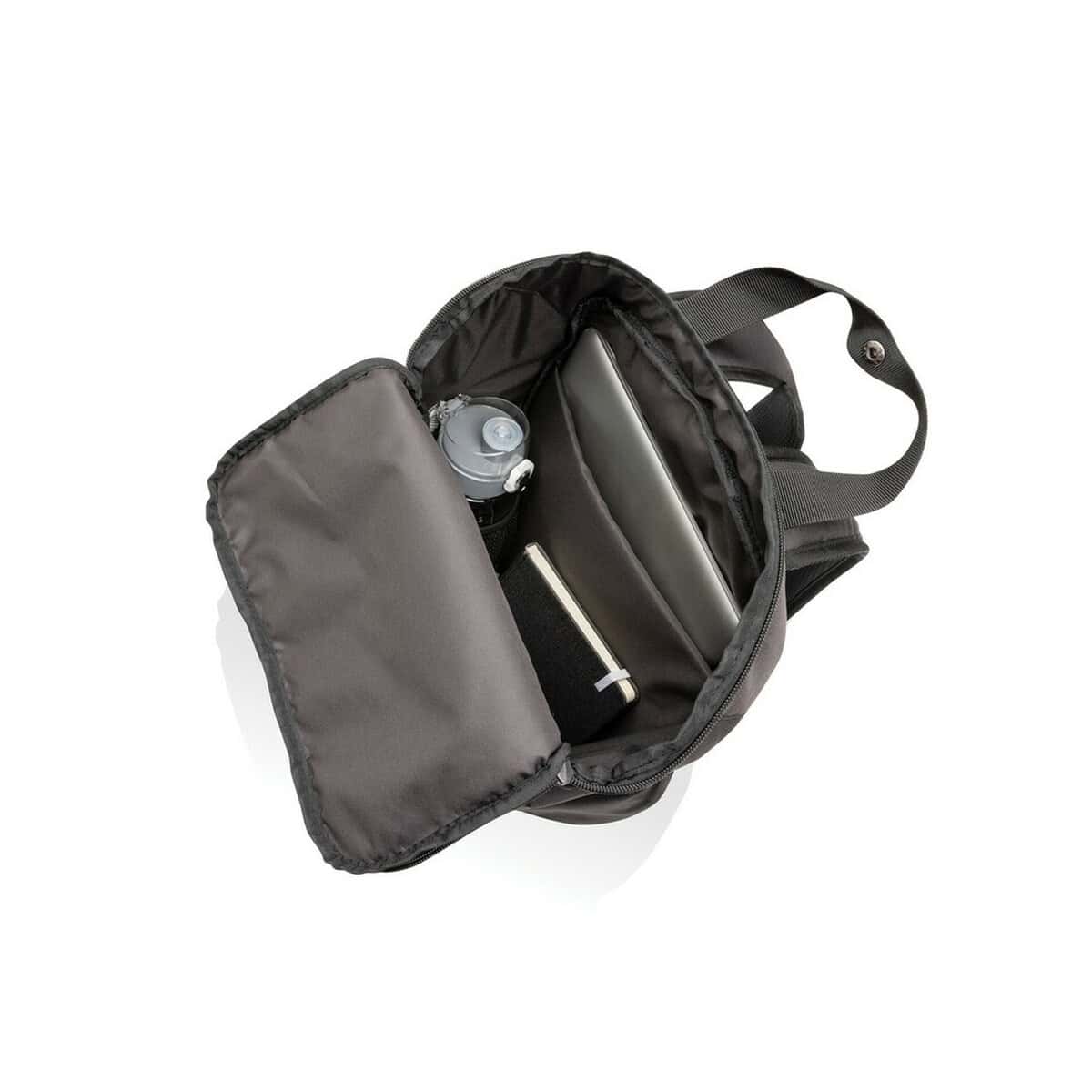 Model ten wyróżnia się kompaktowymi, a jednocześnie pojemnymi wymiarami 30 × 17 × 45 cm, dzięki czemu pomieści notebooka o przekątnej 14″ i wszystkie niezbędne akcesoria. Ślad węglowy wynoszący jedynie 3,15 kg CO₂ czyni go przyjaznym wyborem dla firm, które chcą ograniczać emisje i komunikować zrównoważony rozwój.