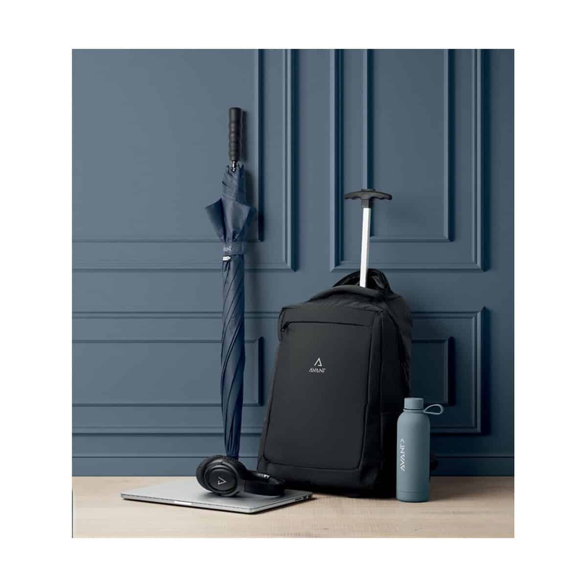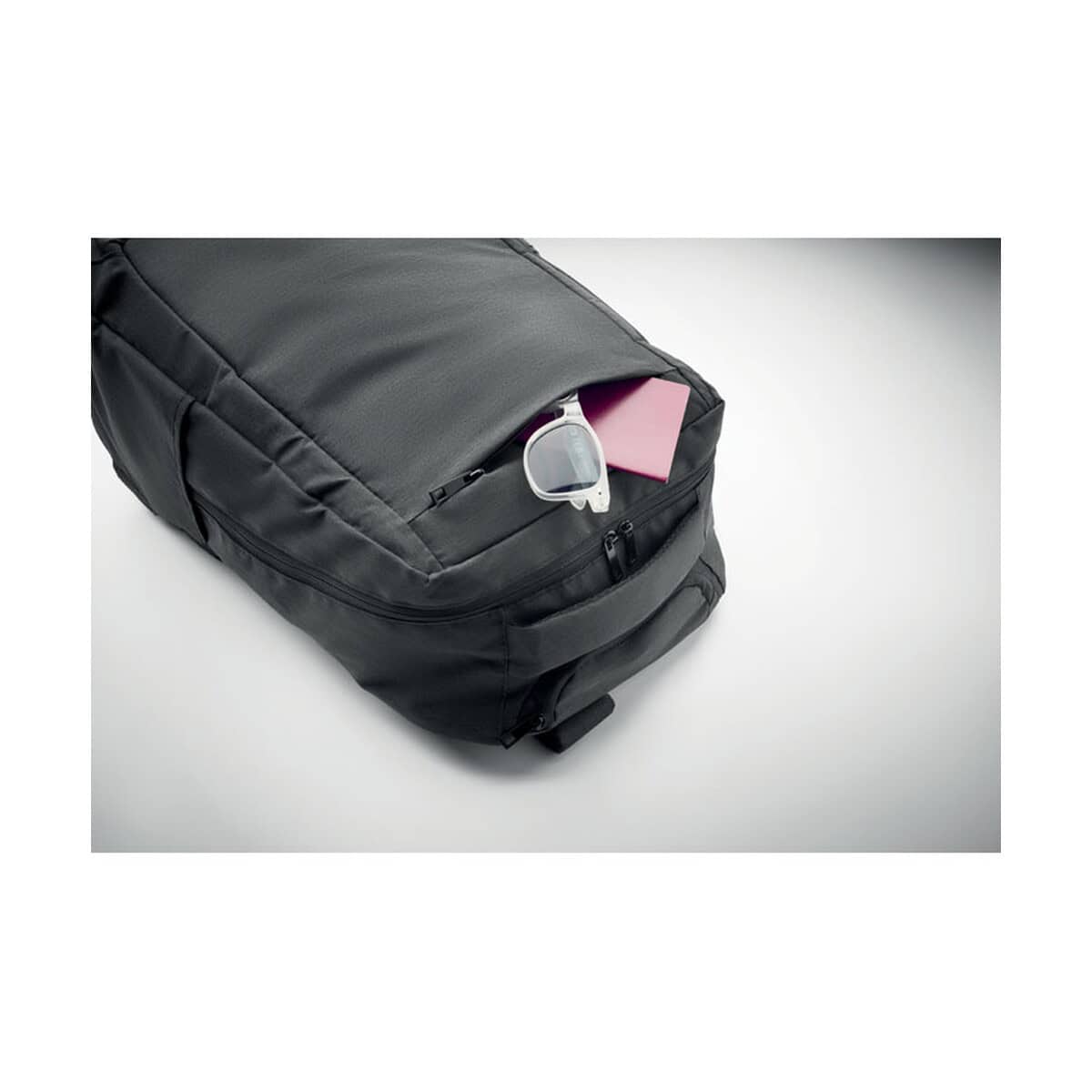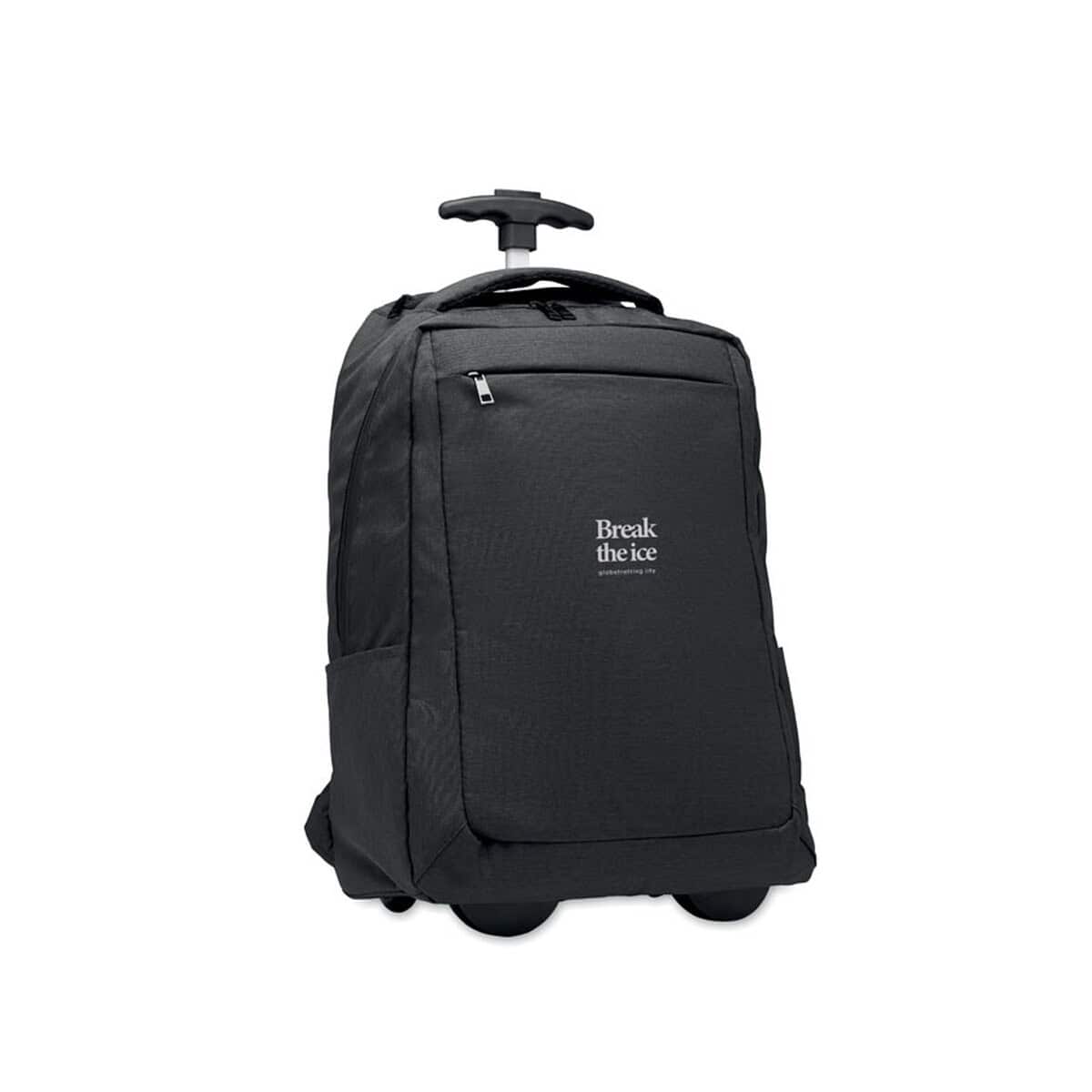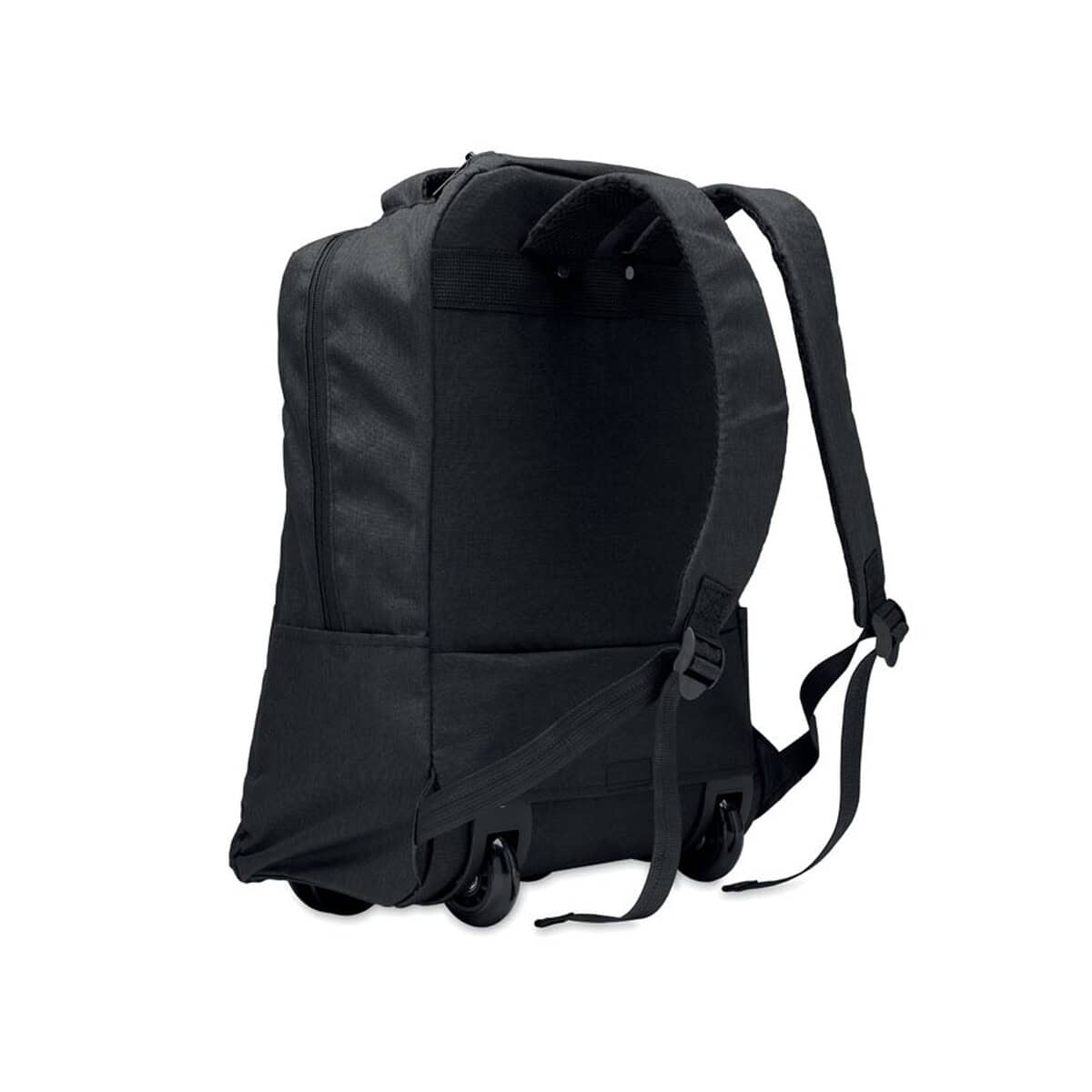 Plecak na laptopa 15 cali DALVIK to znakomity towarzysz miejskich i biznesowych podróży, który łączy w sobie funkcjonalność torby laptopowej oraz wygodę walizki na kółkach 😊. Jego przemyślana konstrukcja z Materiału RPET podkreśla odpowiedzialność środowiskową, a Kolor czarny nadaje profesjonalnego charakteru, dlatego produkt świetnie wpisuje się w kategorię Torby na laptopa z logo oraz Torby podróżne z logo. Dzięki możliwości personalizacji poprzez wyraziste logo i precyzyjny nadruk, staje się on wysoce pożądanym gadżet reklamowy dla branży technologicznej, finansowej, edukacyjnej czy kreatywnej.