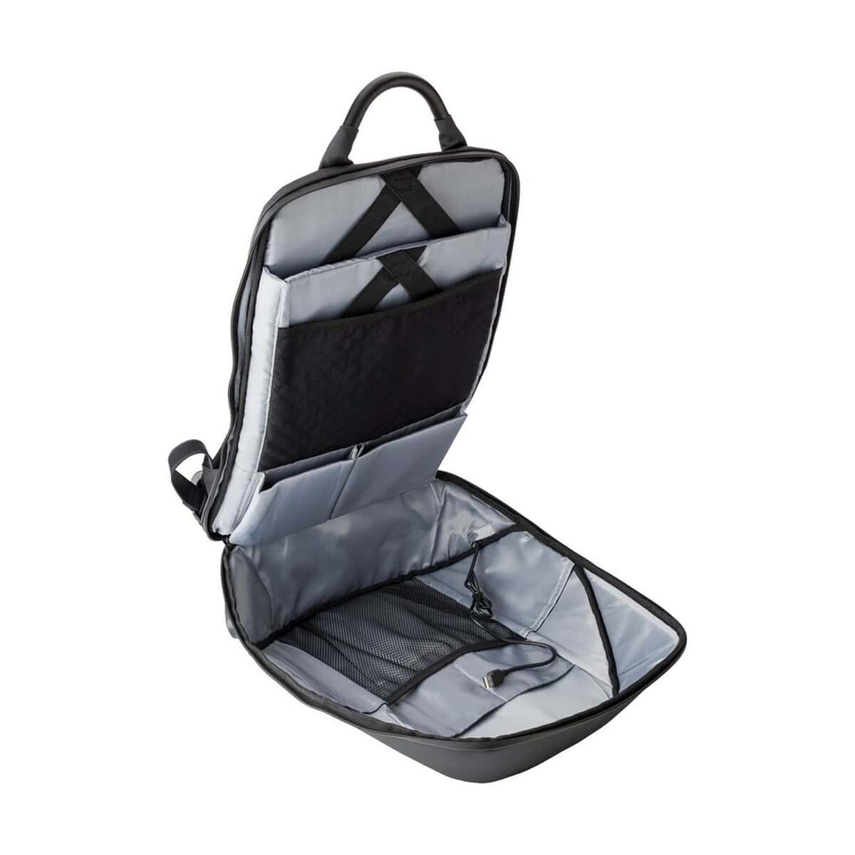 Wykonany z wytrzymałego materiału: nylon gucci 1200D oraz PU, o wymiarach 46 x 35 x 18,5 cm, plecak chroni elektronikę, a jednocześnie jest lekki, bo specjalna funkcja redukcji wagi sprawia, że ładunek wydaje się lżejszy nawet podczas intensywnego dnia. Przegroda główna zamykana jest na suwak, a podwójne su waki blokowane zamkiem szyfrowym (3 cyfry) gwarantują bezpieczeństwo laptopa 15″. Wiele kieszeni wewnętrznych pozwala zorganizować dokumenty, akcesoria i ładowarki, a zewnętrzne gniazdo USB z kablem do ładowania telefonów umożliwia wygodne podpięcie power-banku (nie dołączony). Ergonomiczne, regulowane paski na ramię oraz miękkie plecy wspierają komfort nawet w długiej podróży.