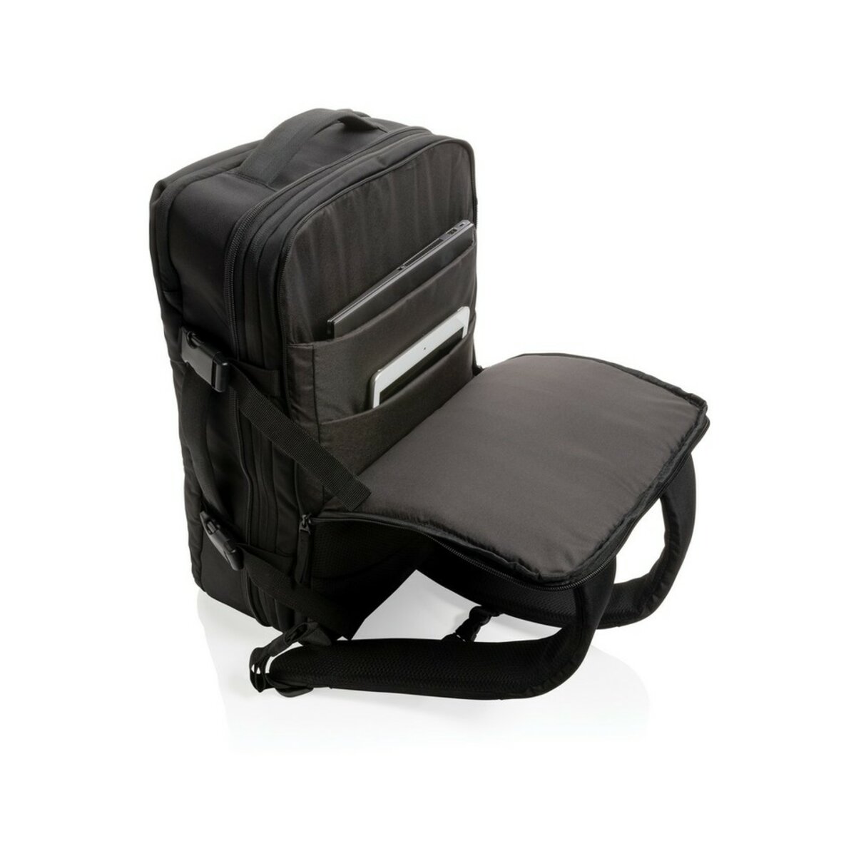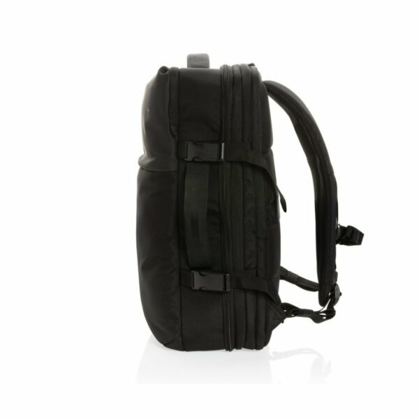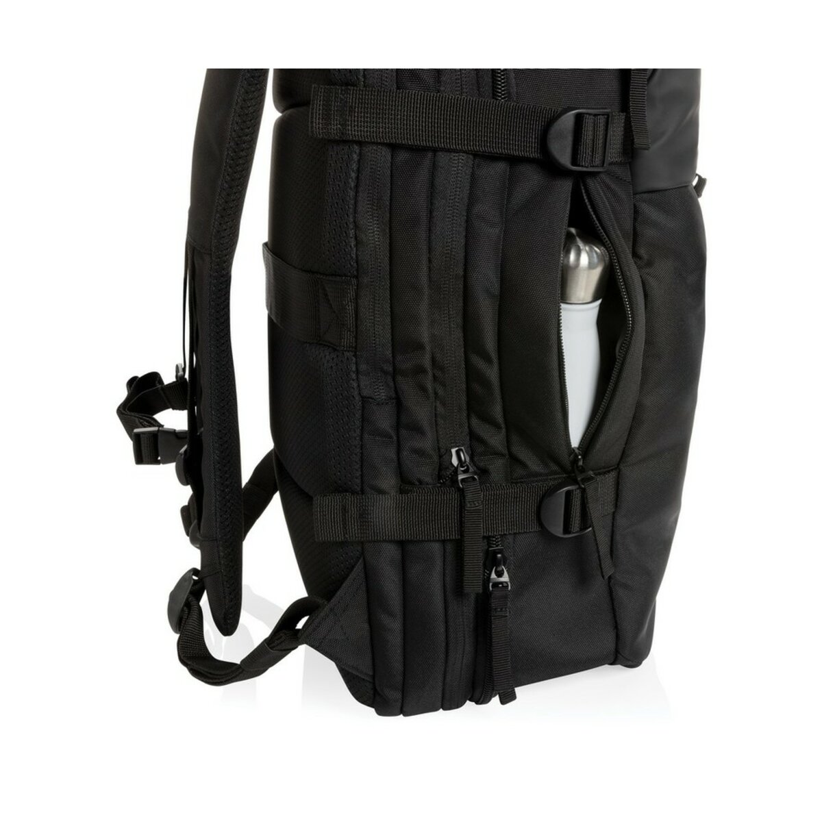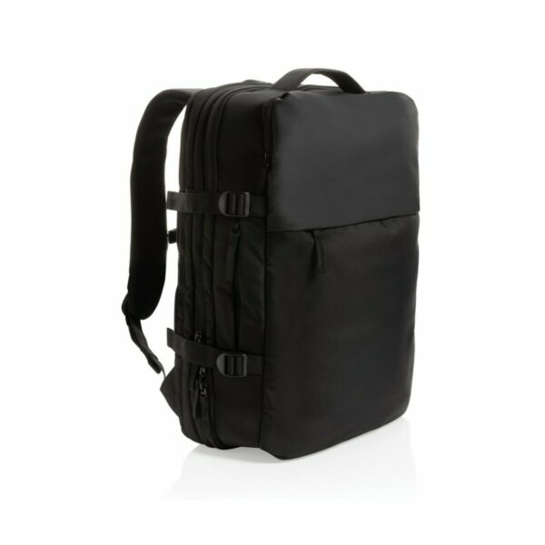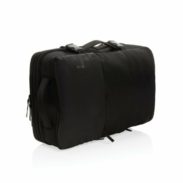 Ten plecak na laptopa 15.6” to doskonały wybór dla osób, które cenią sobie zarówno wygodę, jak i ochronę środowiska. Przestronna przegroda główna wyposażona w przegrodę szybkiego dostępu do laptopa, pozwala na zwiększenie pojemności plecaka o ponad 35% dzięki rozszerzalnej przegrodzie. Dodatkowo zastosowano tu też paski ściągające z boku oraz wewnętrzne kieszenie na akcesoria. Plecak posiada również pasek do zamocowania na walizce. Wykonano go z poliestrów pochodzących z recyklingu, z których ponownie wykorzystano 38,4 butelek PET o pojemności 0,5 l i zaoszczędzono 22,9 l wody. Zastosowano tu również technologię śledzącą AWARE™, dzięki której włókna są identyfikowalne z pochodzenia. 2% wpływów z każdego sprzedanego produktu jest przekazywane na rzecz Water.org. Plecak nie zawiera PVC.