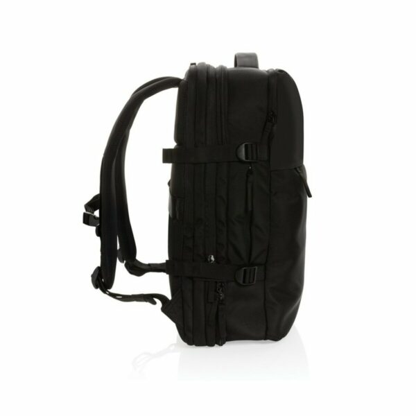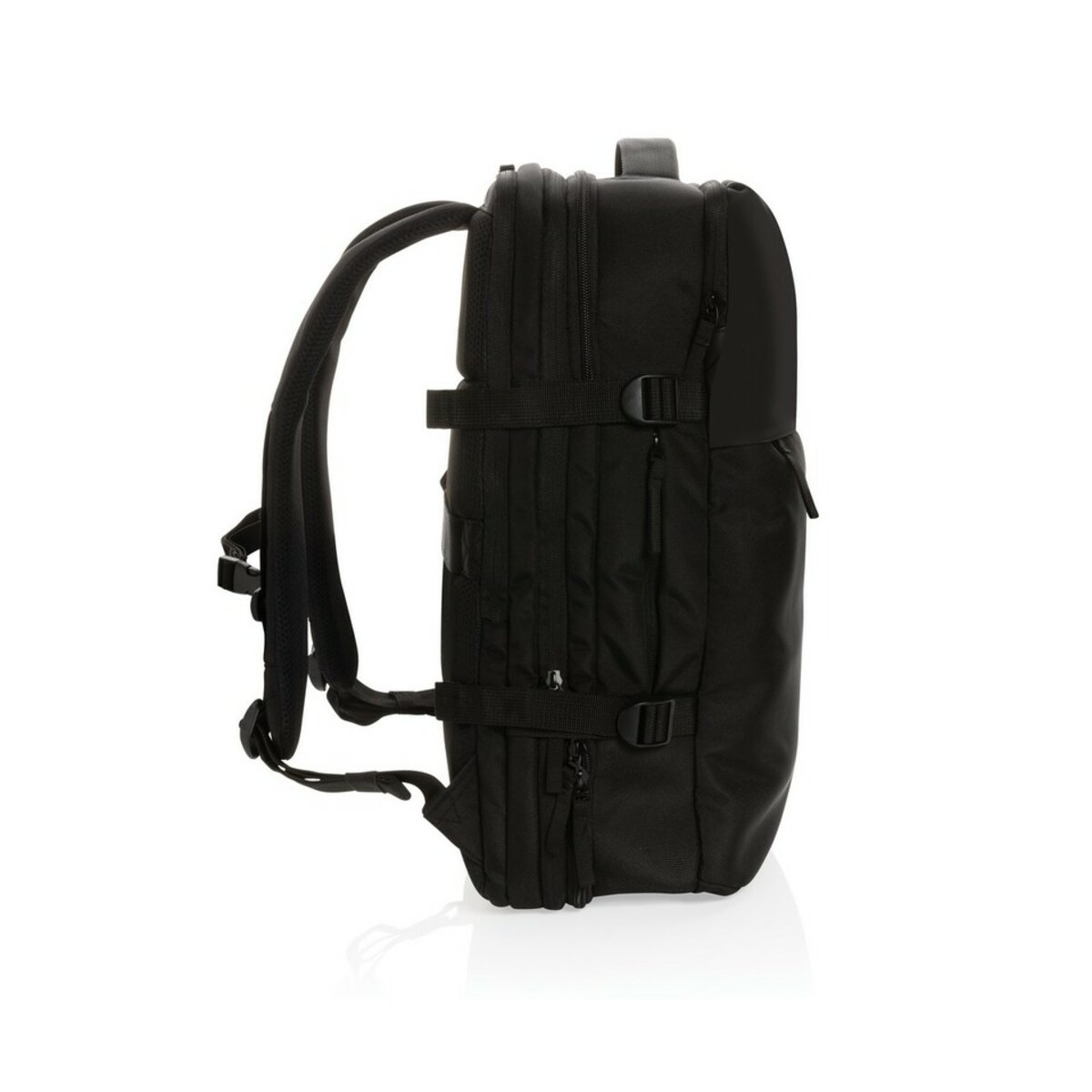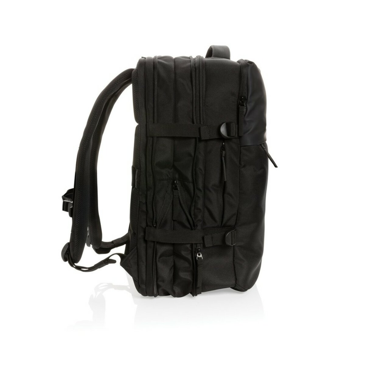 Ten plecak na laptopa 15.6” to doskonały wybór dla osób, które cenią sobie zarówno wygodę, jak i ochronę środowiska. Przestronna przegroda główna wyposażona w przegrodę szybkiego dostępu do laptopa, pozwala na zwiększenie pojemności plecaka o ponad 35% dzięki rozszerzalnej przegrodzie. Dodatkowo zastosowano tu też paski ściągające z boku oraz wewnętrzne kieszenie na akcesoria. Plecak posiada również pasek do zamocowania na walizce. Wykonano go z poliestrów pochodzących z recyklingu, z których ponownie wykorzystano 38,4 butelek PET o pojemności 0,5 l i zaoszczędzono 22,9 l wody. Zastosowano tu również technologię śledzącą AWARE™, dzięki której włókna są identyfikowalne z pochodzenia. 2% wpływów z każdego sprzedanego produktu jest przekazywane na rzecz Water.org. Plecak nie zawiera PVC.