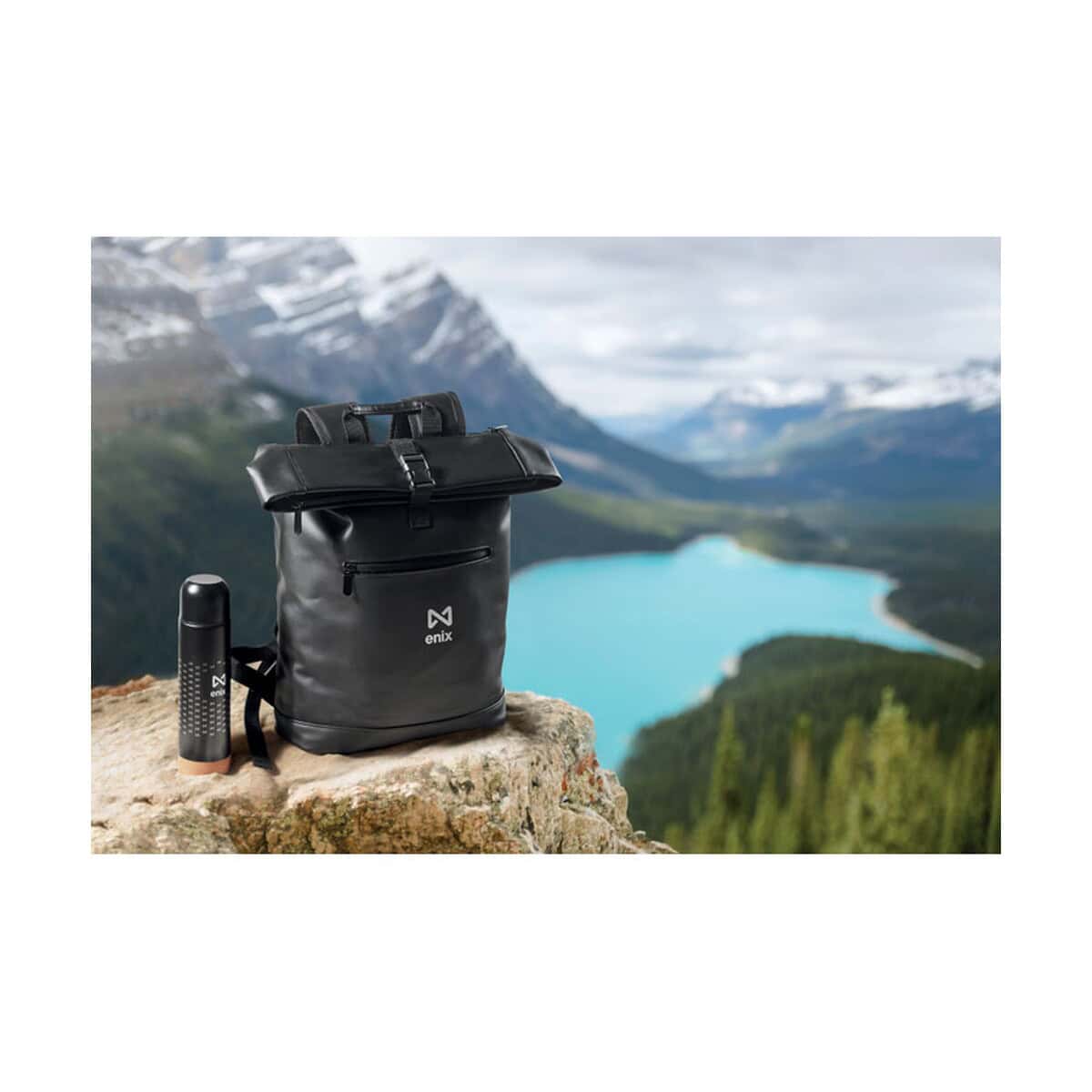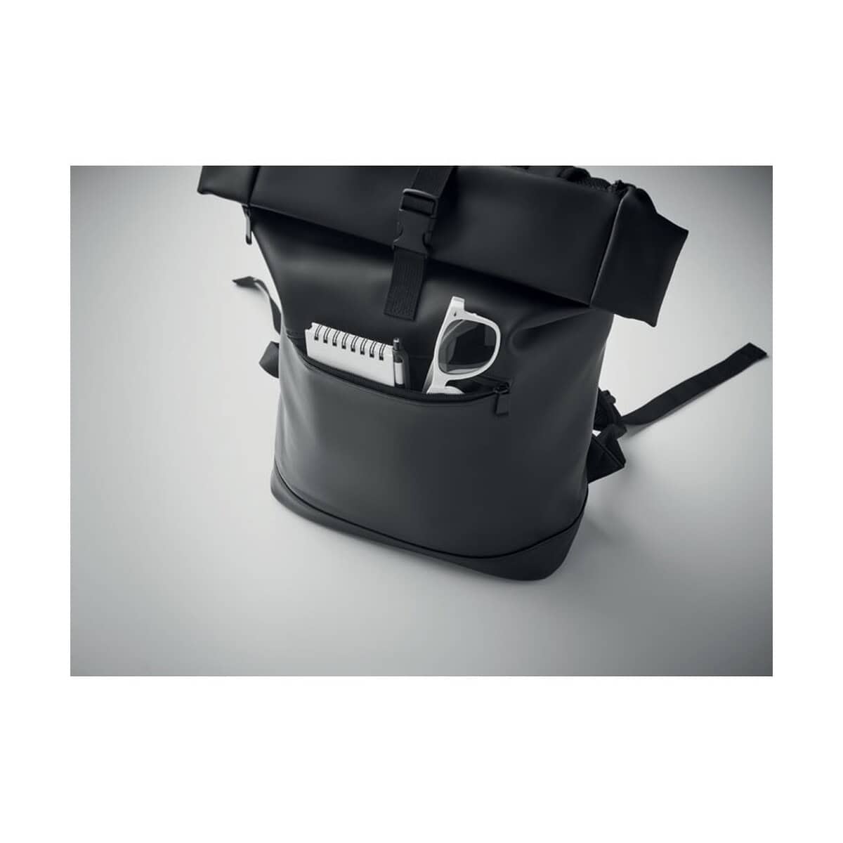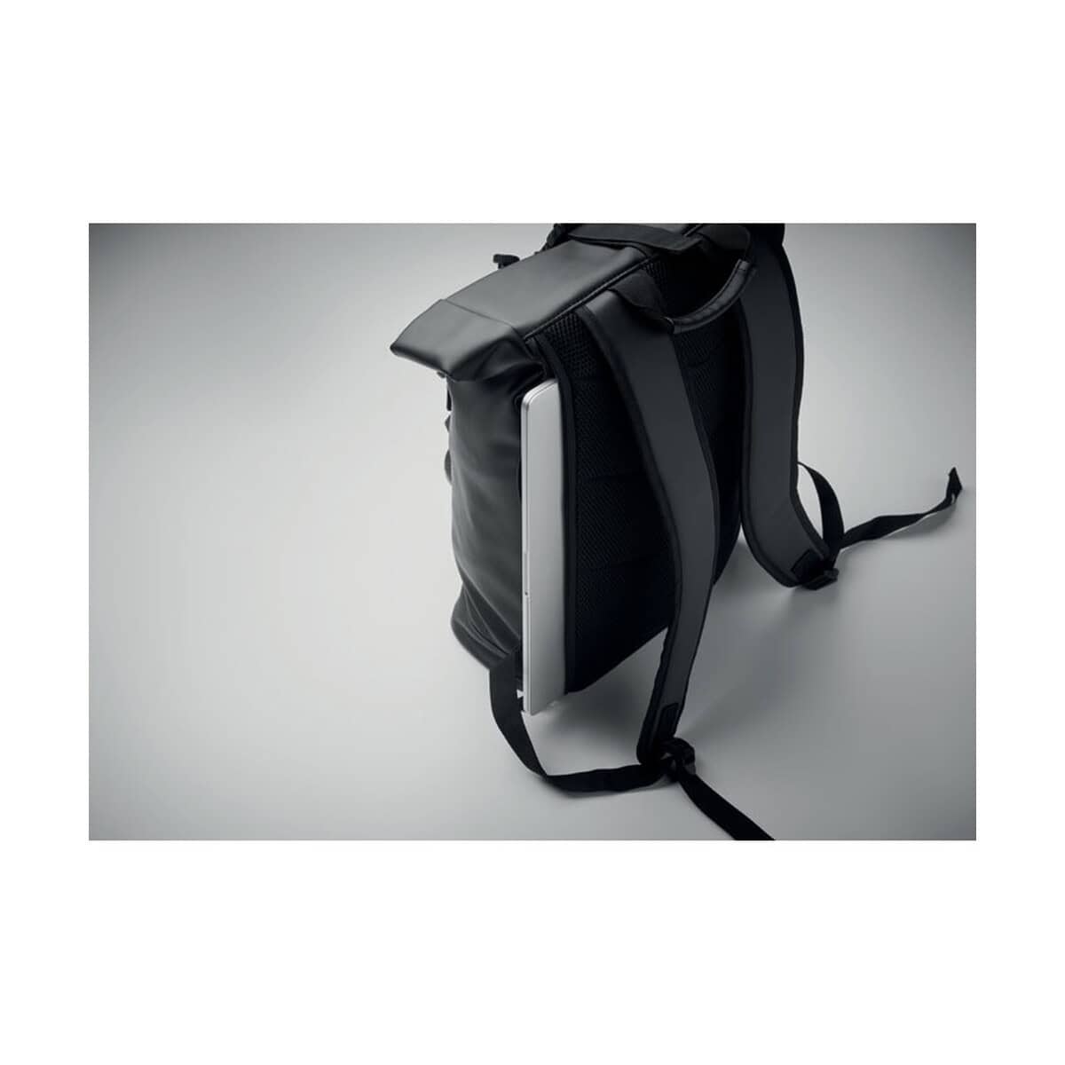 Plecak na laptopa PU rolltop BAI ROLL to nowoczesny, a zarazem elegancki kompan codziennych wyzwań, który dzięki minimalistycznemu designowi świetnie wpisuje się w miejski styl życia. Wykonany z trwałego materiału PU i wykończony podszewką 210D RPET, gwarantuje odporność na przetarcia oraz niespodziewane zmiany pogody. Jego 15-calowa komora na laptopa z wyściełanym tyłem chroni sprzęt przed wstrząsami, a wzmocniona podstawa podnosi stabilność zawartości. Praktyczny system rolltop umożliwia regulację pojemności, a duża przednia kieszeń zapinana na zamek ułatwia szybki dostęp do niezbędnych drobiazgów 🙂.