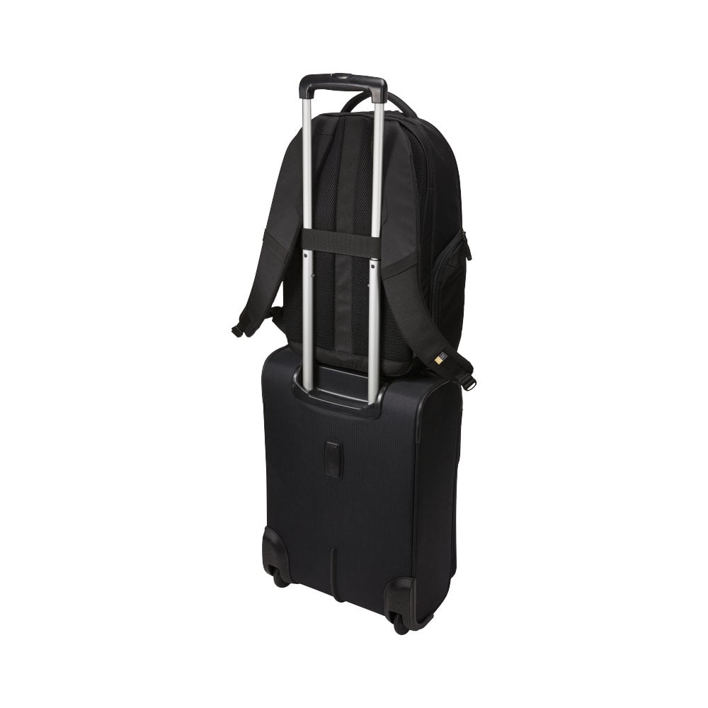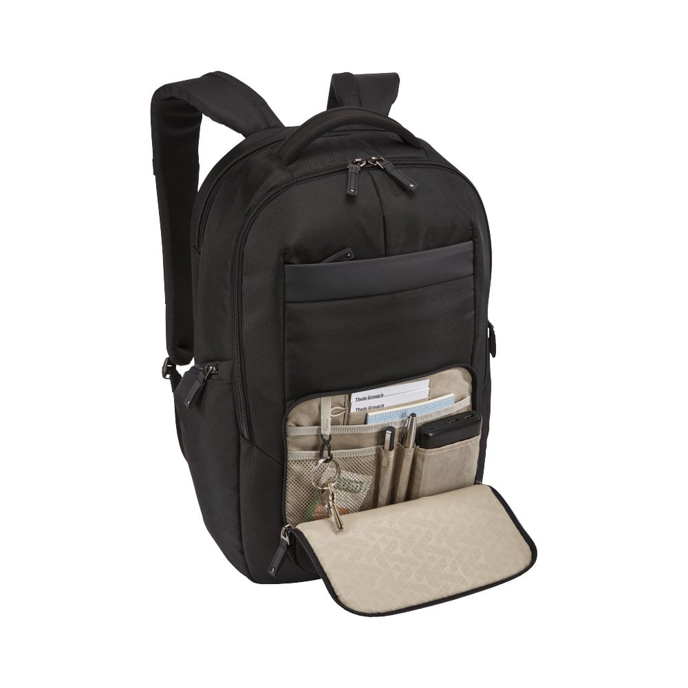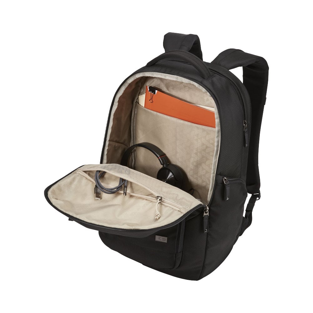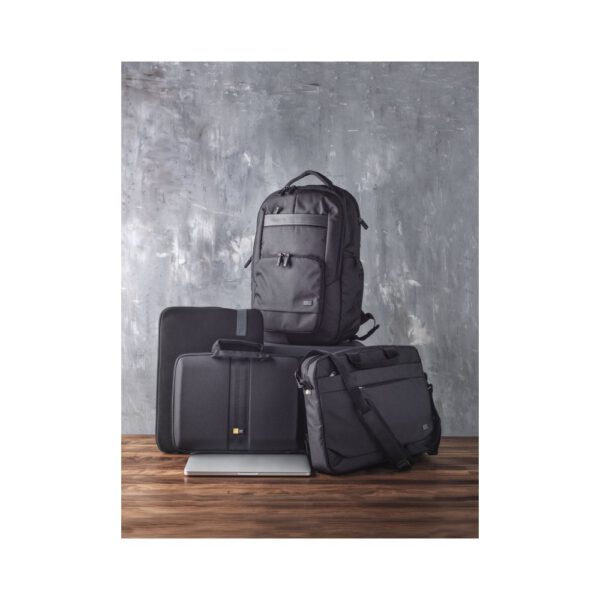 Ten wytrzymały plecak Case Logic zapewnia maksymalny komfort i wygodę. Posiada dużą główną komorę zapinaną na zamek z wyściełaną przegrodą na laptopa 15,6 cala i tablet 10,1 cala oraz zapinaną na zamek siateczkową kieszeń na kable i akcesoria. Przedni panel organizacyjny pozwala na przechowywanie drobnych urządzeń elektronicznych, kabli, akcesoriów, wizytówek i kluczy. Dodatkowo, plecak wyposażony jest w rozszerzalne kieszenie boczne na butelkę z wodą lub zasilacz, wyściełane ramiączka, pikowany tylny panel z siateczki przepuszczającej powietrze, miękki uchwyt i prowadnice wózka. Do tego wszystkiego dochodzi 25-letnia gwarancja Case Logic.