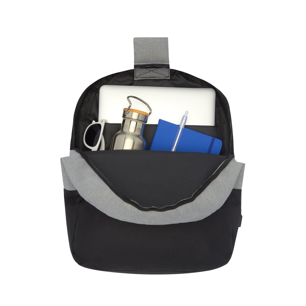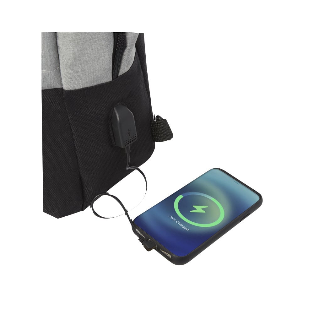 Ten plecak na jedno ramię to idealny wybór dla osób ceniących stylowy design. Przedni panel jest ozdobiony melanżowym efektem kolorystycznym, natomiast tylny panel jest czarny. Plecak posiada dużą komorę główną zapinaną na zamek z wyściełaną kieszenią na 15,6-calowego laptopa. Ponadto został wyposażony w port USB oraz kabel USB-A z 1 złączem męskim i 1 żeńskim. Pasek na ramię można przymocować w lewym lub prawym dolnym rogu torby. Użyte barwniki tkanin, sploty i nadruki nadają końcowemu produktowi niepowtarzalny charakter.