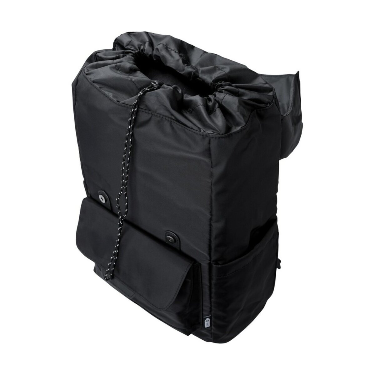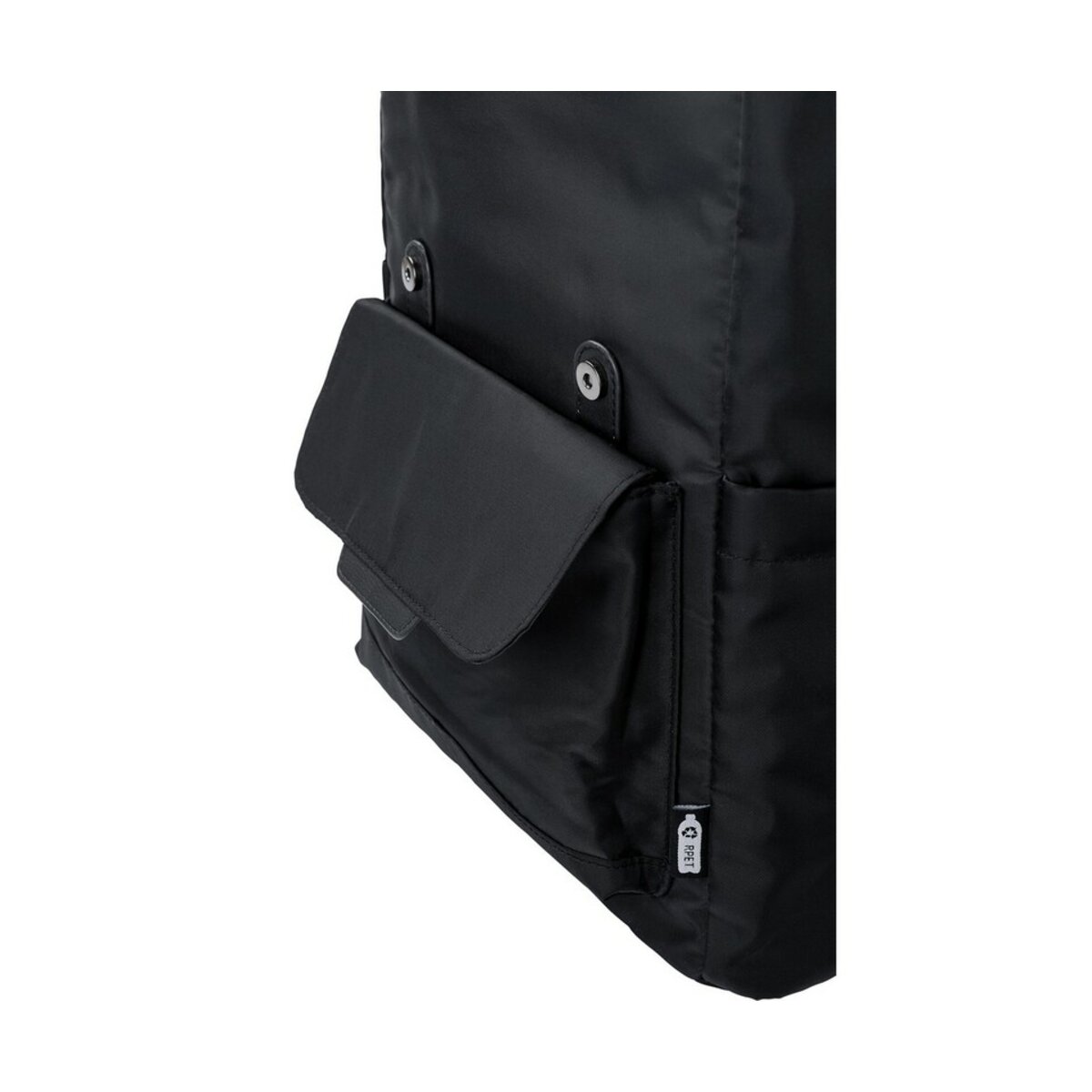 Plecak RPET wyposażony został w wygodną kieszeń na laptopa 15 cali oraz dodatkowe, boczne kieszenie, idealne na drobne akcesoria. Wewnętrzna przestrzeń zamykana jest na sznurek, co zwiększa bezpieczeństwo przenoszonych przedmiotów, a przednia kieszeń zasuwana na magnes umożliwia łatwy dostęp do najczęściej używanych przedmiotów.